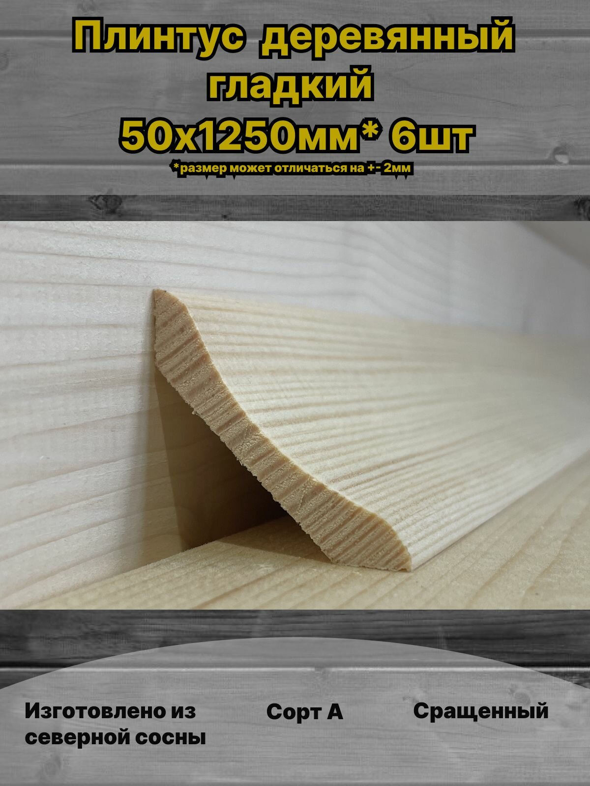 Плинтус деревянный 10x50x1250мм Сорт А сосна 6 шт в упаковке информация: