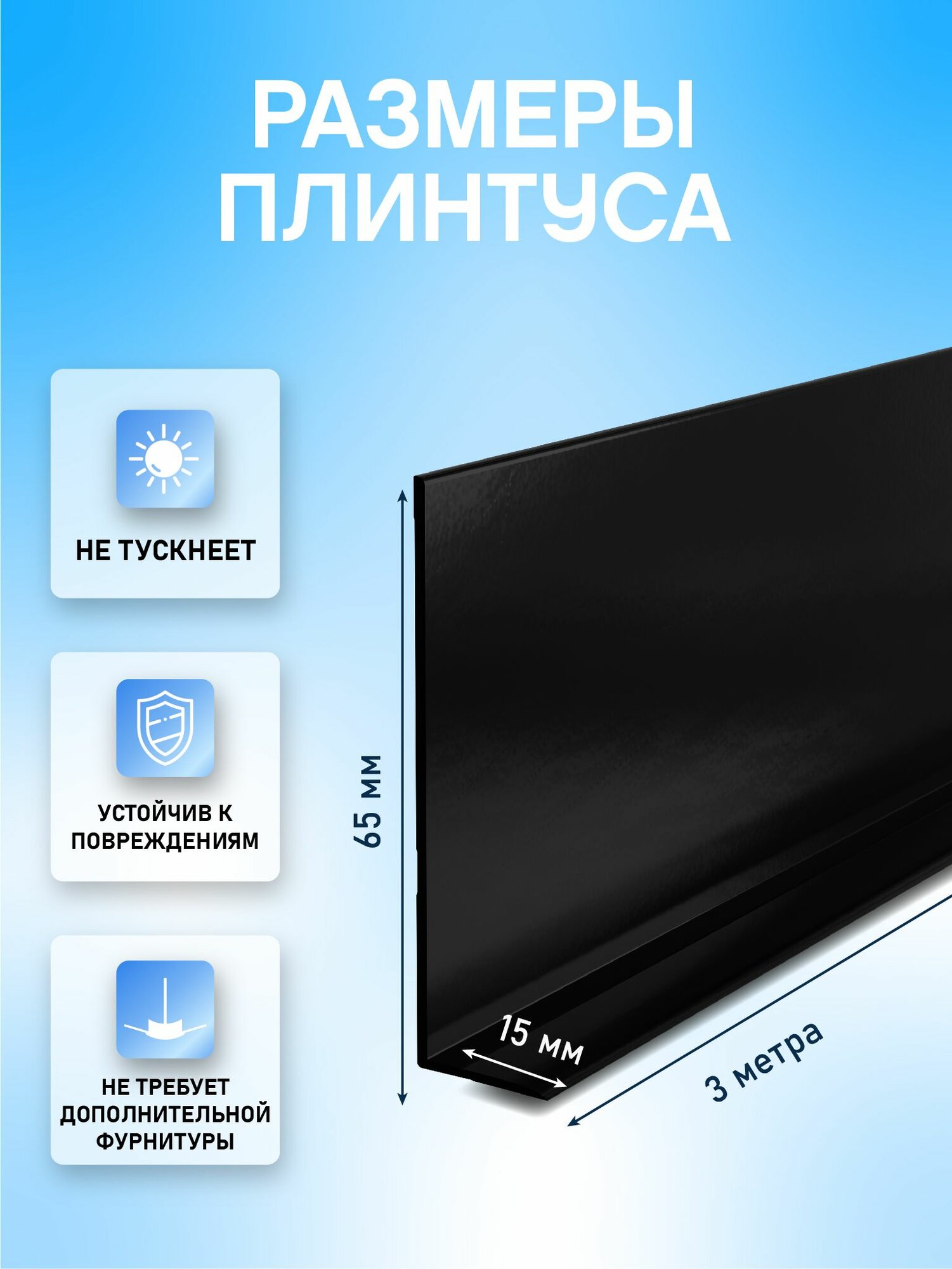 ПВХ Гибкий плинтус для пола самоклеящийся, 65мм, 3 м, Черный информация: