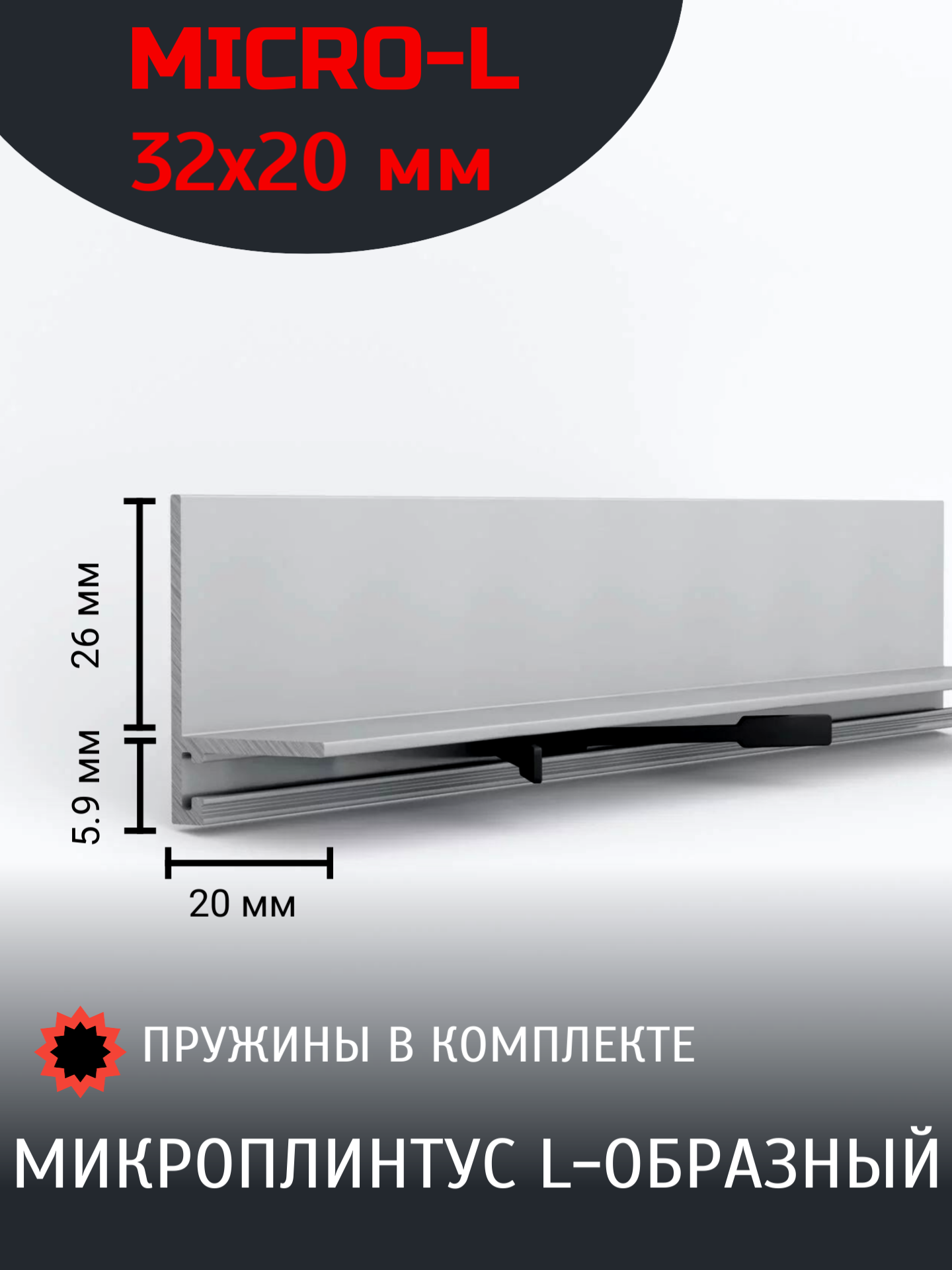 Микроплинтус micro-L 20x26x3000/13 шт, серебристые, матовые, ударопрочные информация: