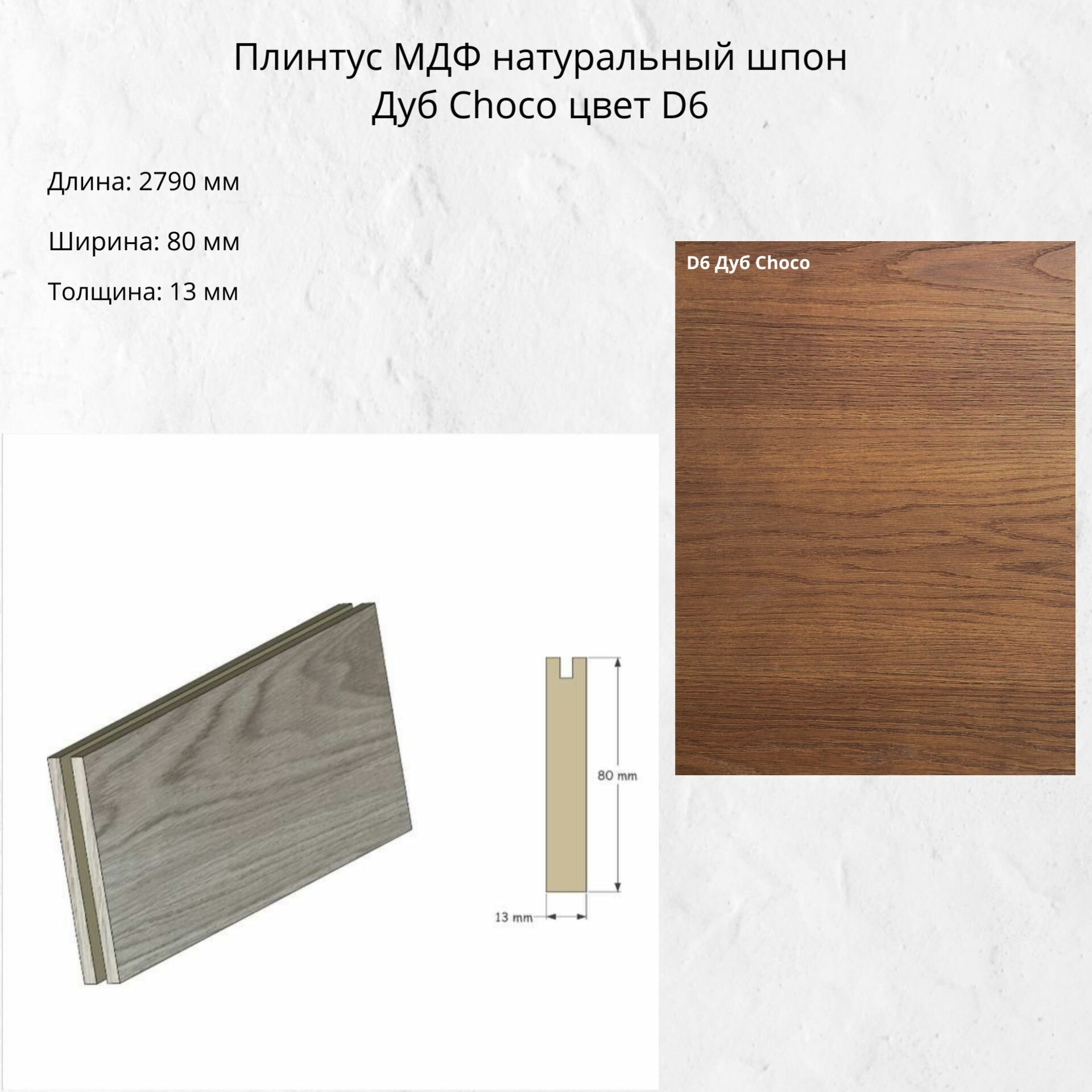 Плинтус МДФ в шпоне дуба для стеновых панелей Pero, цвет Choco D6, 2790х80х13 мм информация:
