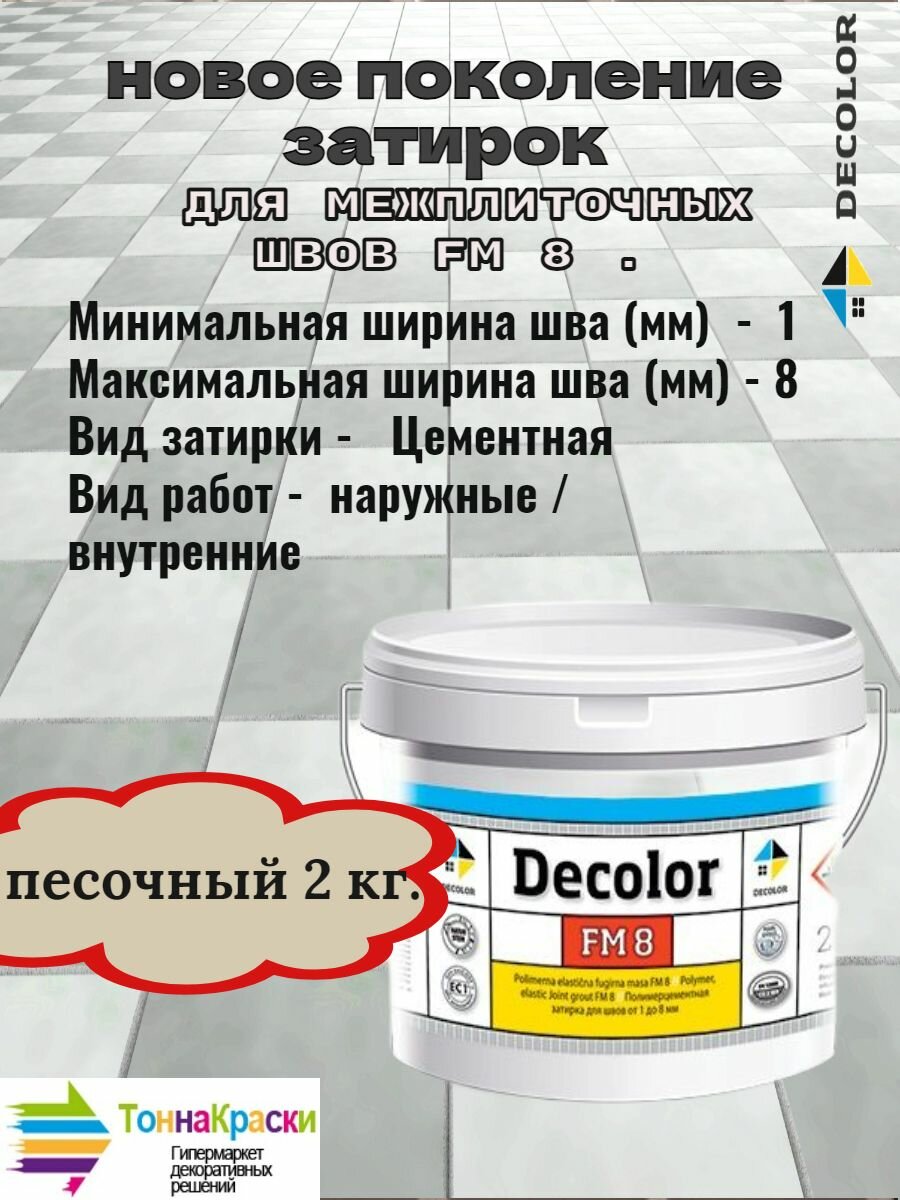 Полимерцементная затирка для заполнения межплиточных швов DECOLOR FM 8 песочная (2кг) информация: