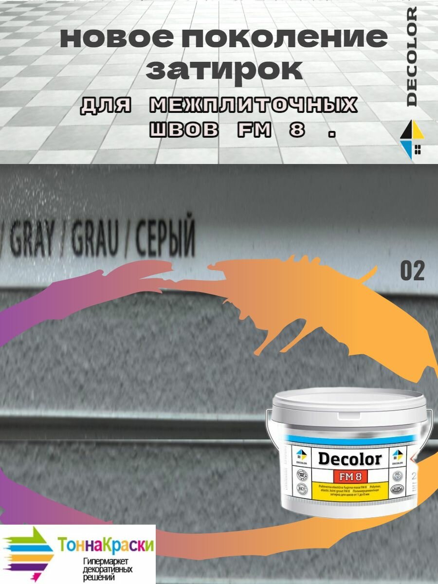 Полимерцементная затирка для заполнения межплиточных швов DECOLOR FM 8 серая (2кг) информация: