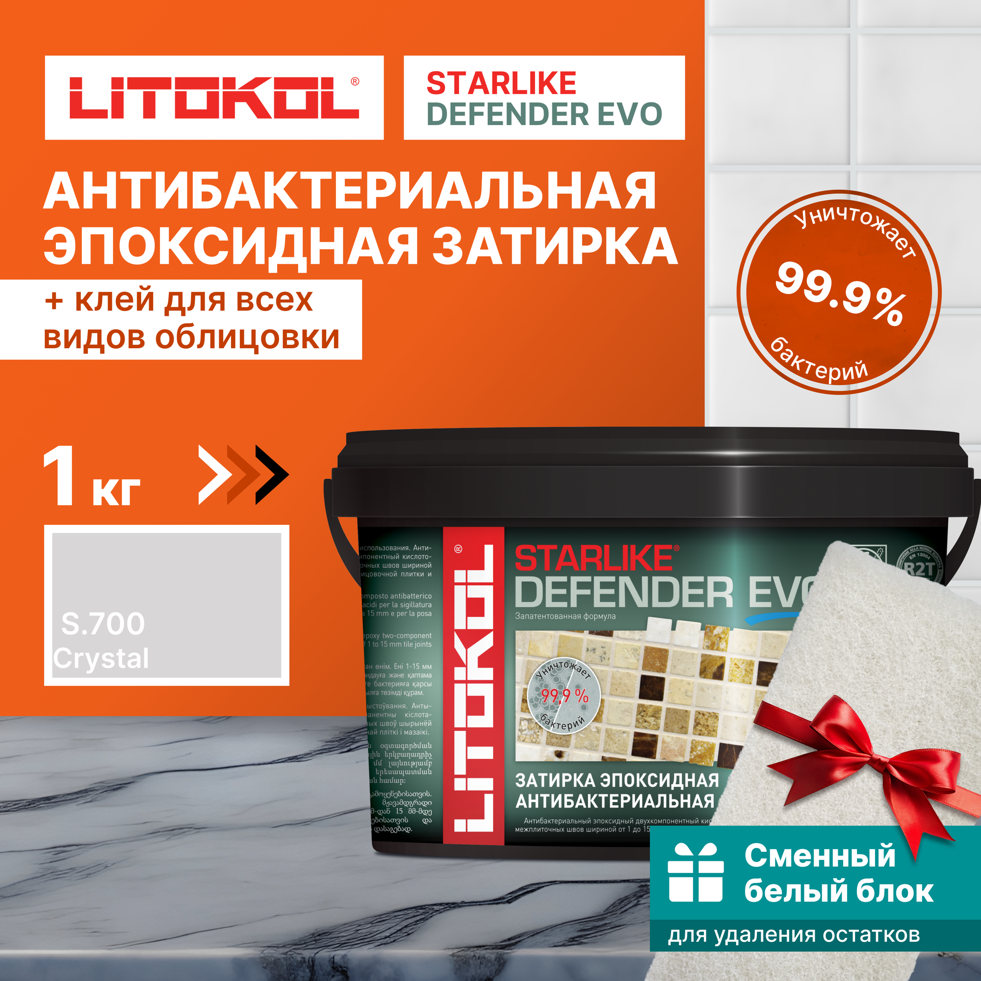 Отзывы на Затирка LITOKOL Starlike Defender Evo S.700 Crystal, 1 кг + 1 белый сменный блок