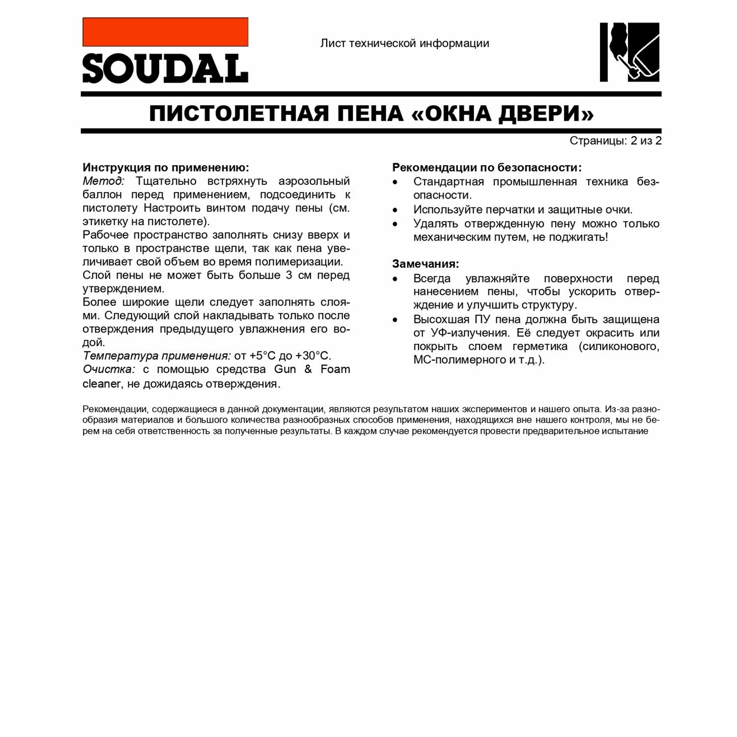 Пена професcиональная Soudal Yellow 750 мл. информация: