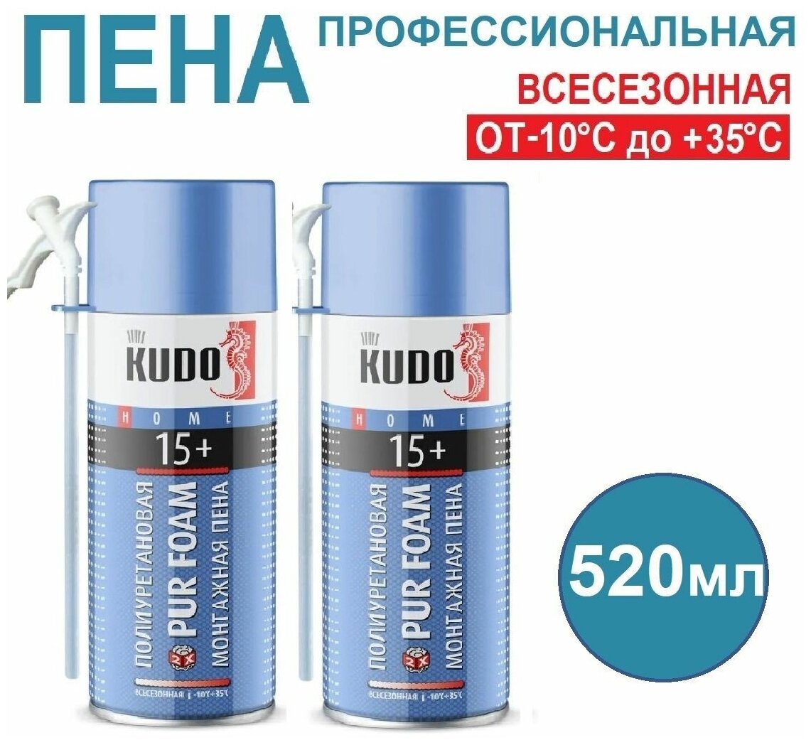 Бытовая монтажная пена KUDO "PUR FOAM 15+", выход до 15 л. Всесезонная, 2шт информация: