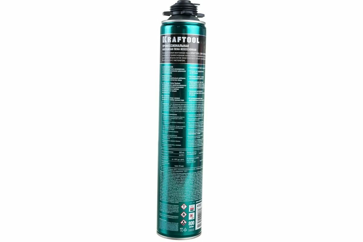 Монтажная пена KRAFTOOL LOW EXPANSION, 800 мл, пистолетная, всесезонная, SVS, не залипающий клапан, выход до 50 л, (41181) информация: