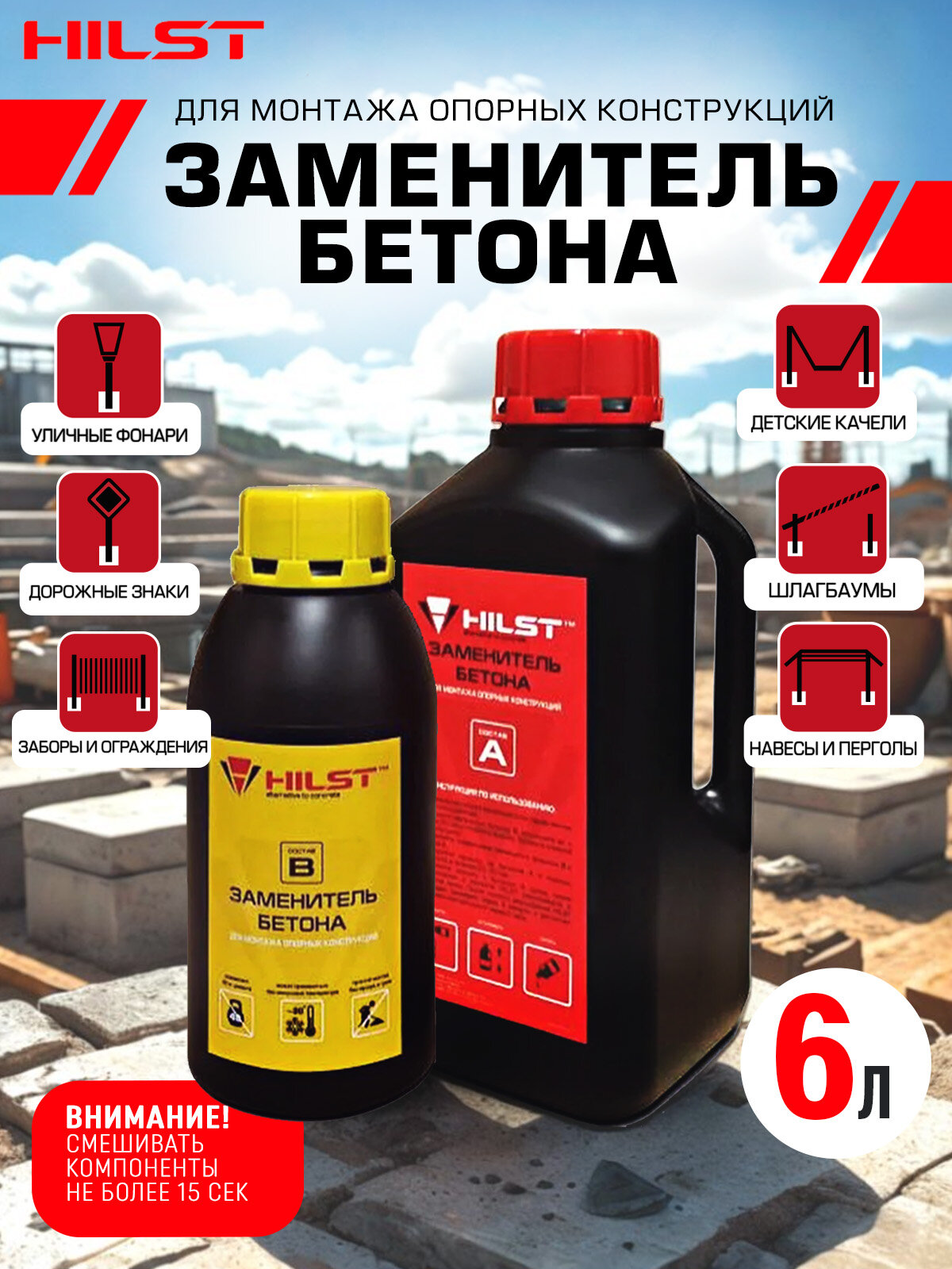 Заменитель бетона HILST Standart 6 литров для 12 столбов информация: