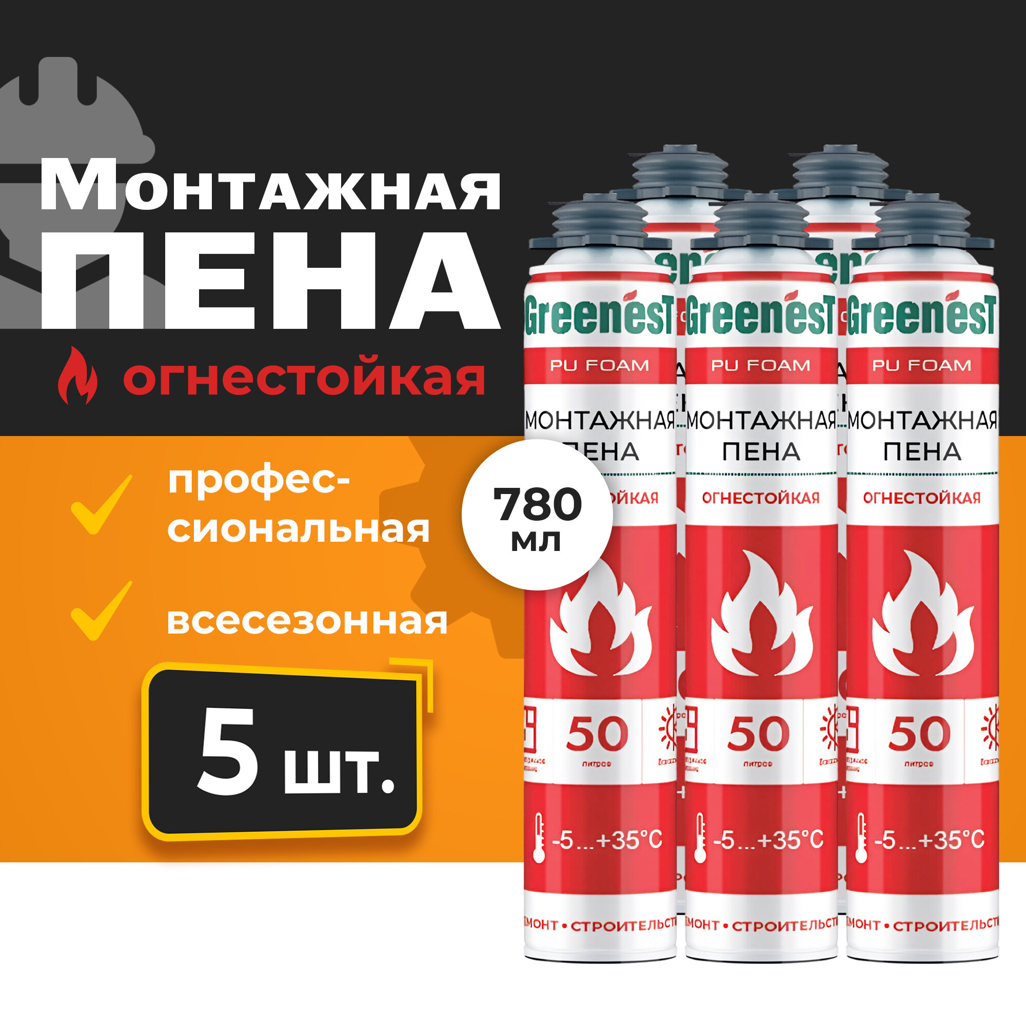 10 цен на Монтажная пена GreenesT PU FOAM 50 профессиональная огнестойкая всесезонная 5 шт.