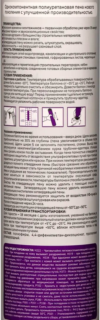 Пена монтажная бытовая RemontPlus 45 всесезонная 410 мл информация: