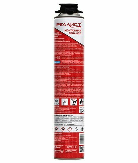 Профессиональная пена монтажная REALIST PRO Red 80 л, зимняя информация: