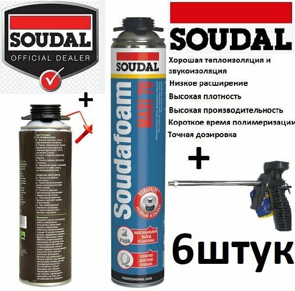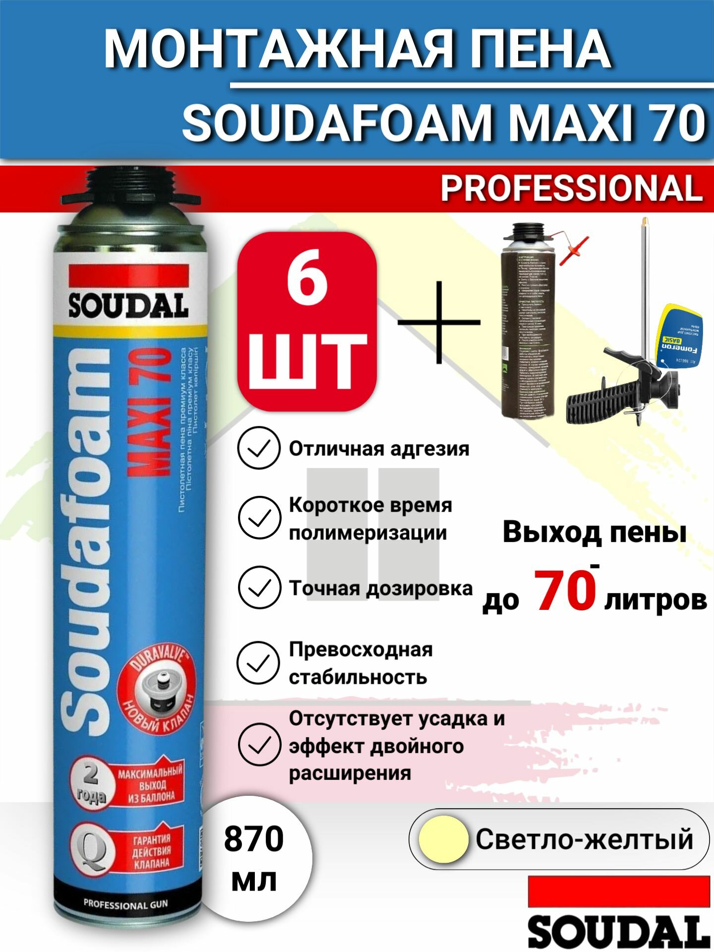 Пена монтажная SOUDAL Soudafoam Professional MAXI 70 870 мл 6 шт плюс пистолет и очиститель информация: