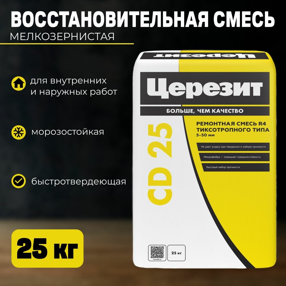 Церезит CD25 25 кг. Мелкозернистая ремонтно - восстановительная смесь ( от 5 до 30 мм ) информация: