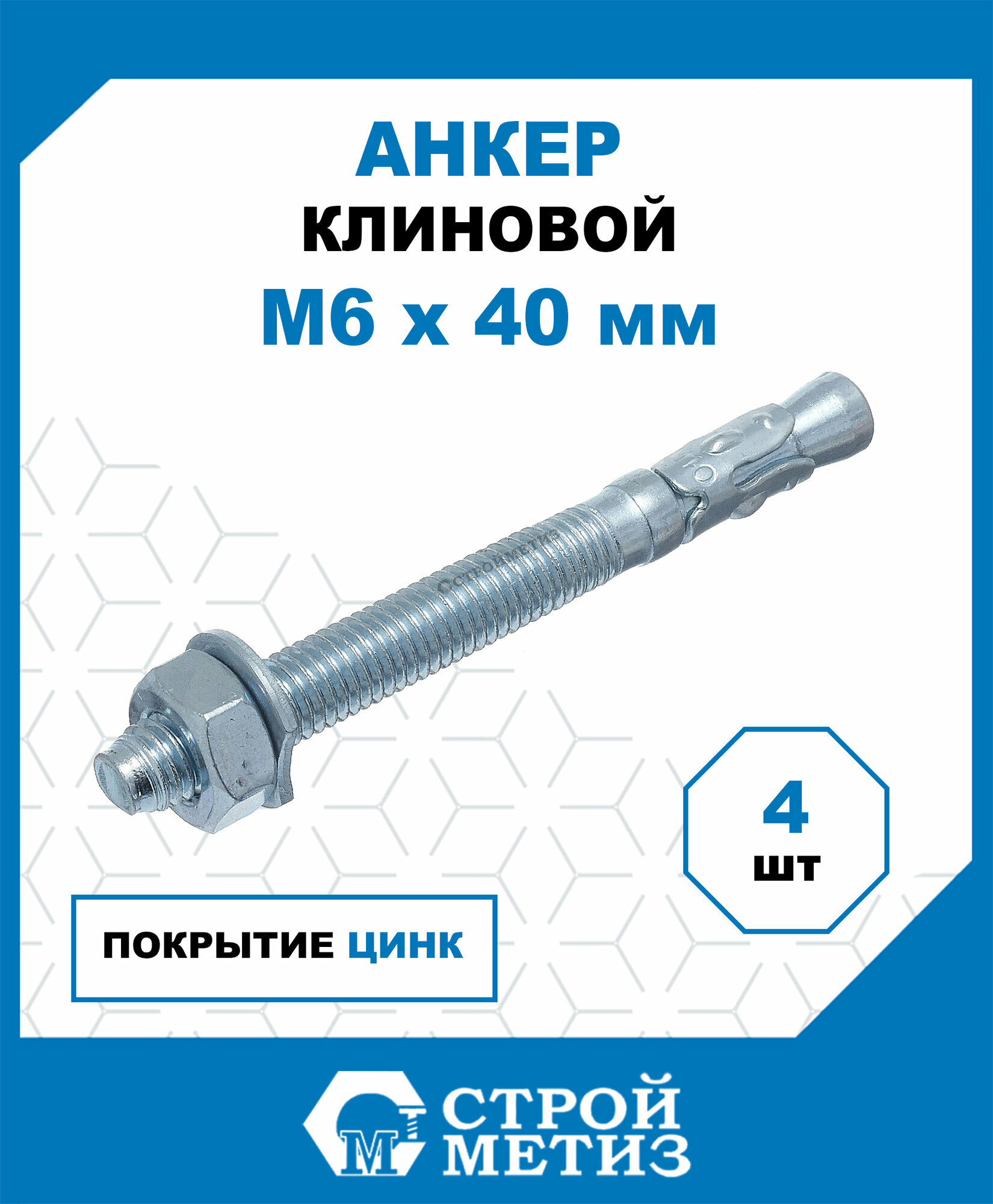 Анкеры Стройметиз клиновые 6х40, сталь, покрытие - цинк, 4 шт. информация: