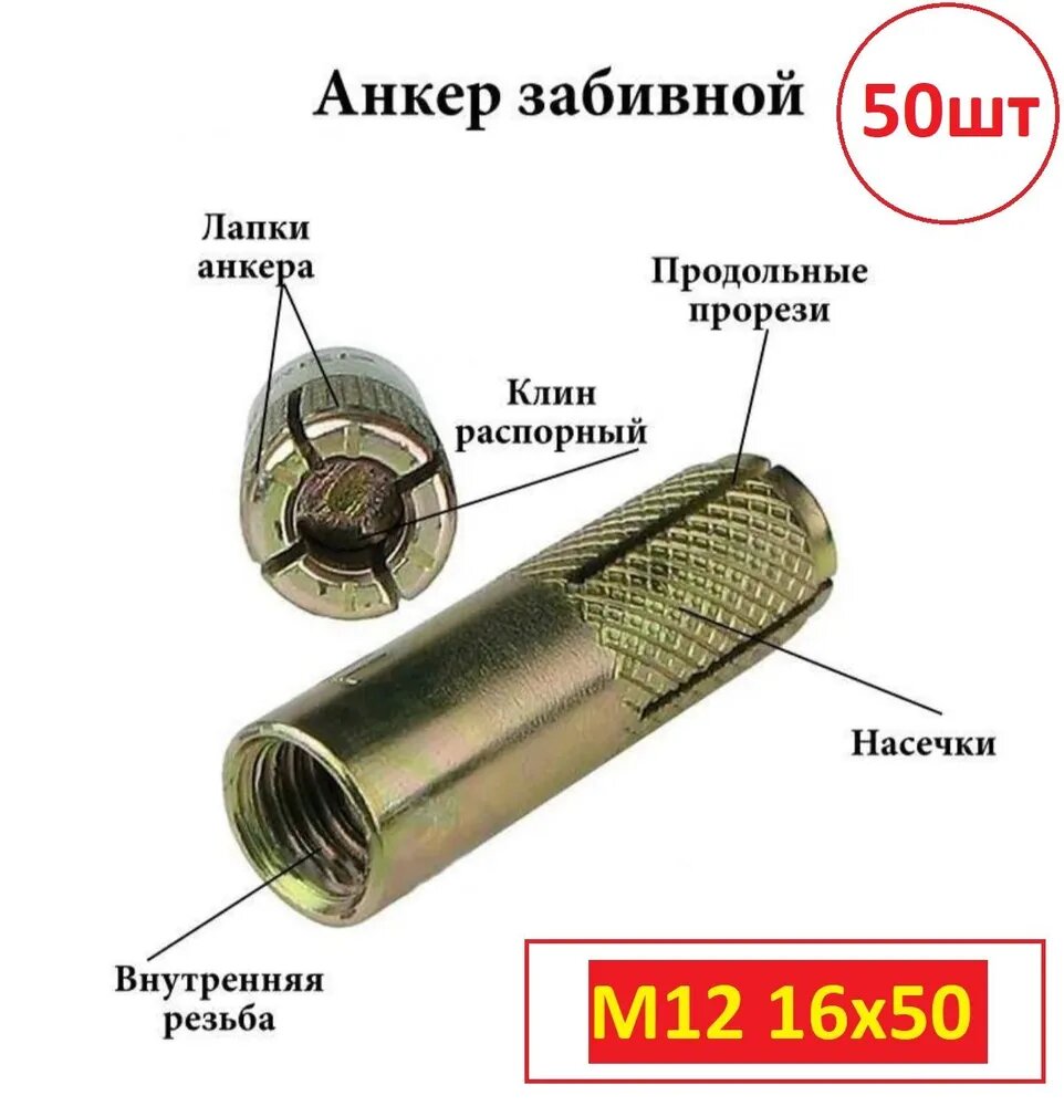 Анкер Забивной M12 16x50мм 50штук информация: