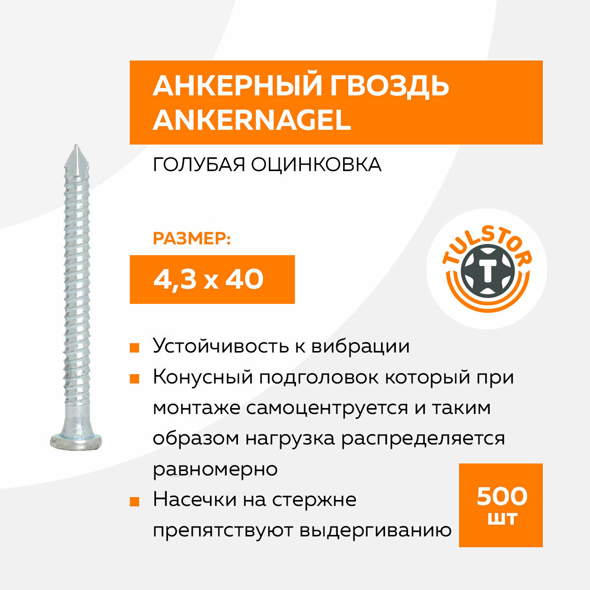Ершеный гвоздь 4,3х40 Ankernagel голубая оцинковка упак 500шт. информация: