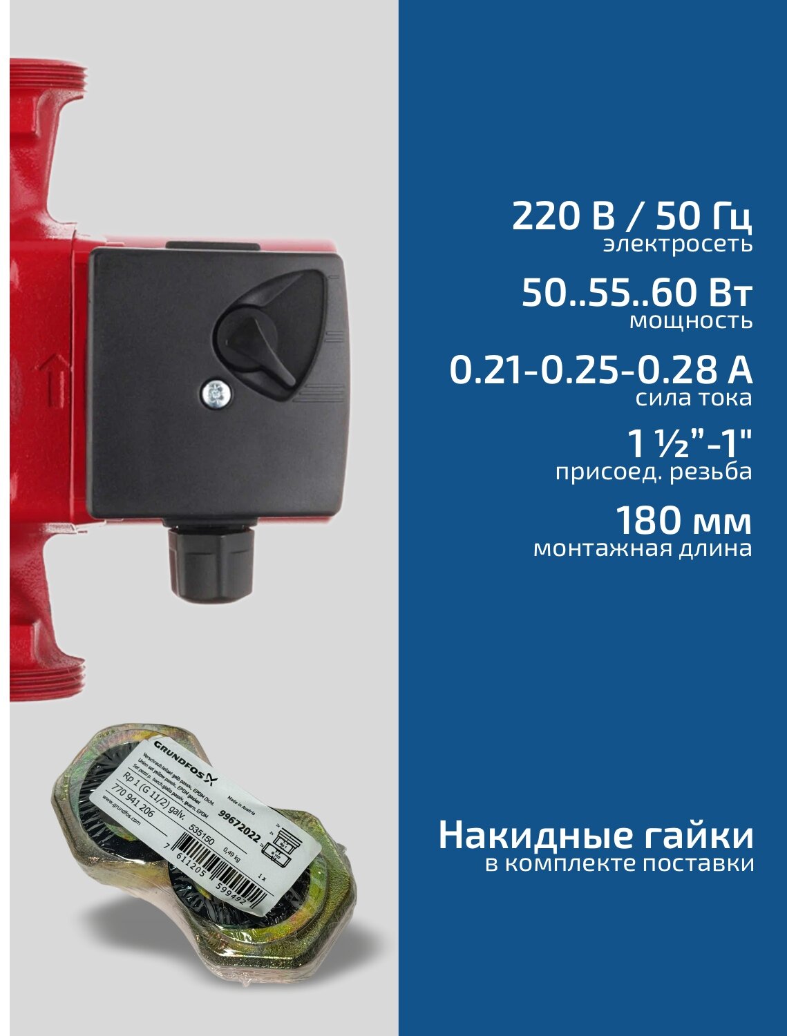 Насос циркуляционный 25-60 180 (W) чугунный, для горячей воды, с гайками информация: