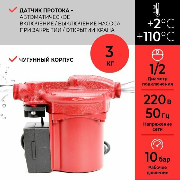 Насос циркуляционный для повышения давления Damento UPА 15-90 (120 Вт, 8,5 л/мин, 160 мм) информация: