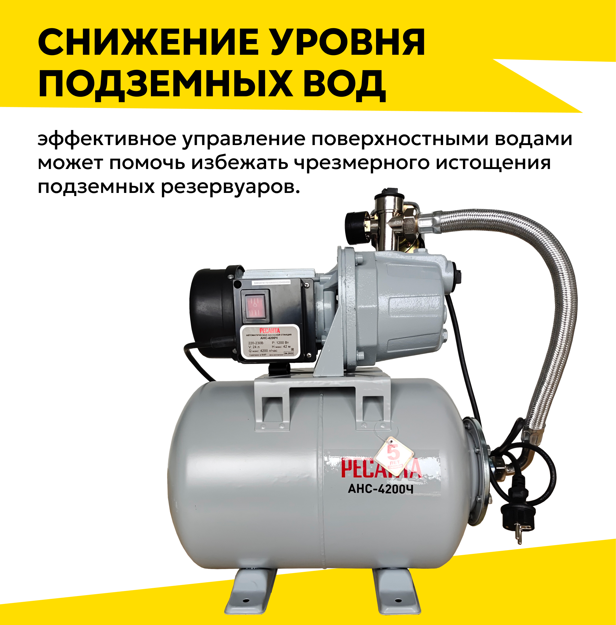 10 цен на Автономная насосная станция Ресанта АНС-4200Ч, 1200 Вт, напор – 42 м, 70 л/мин, гидроаккумулятор – 24 л