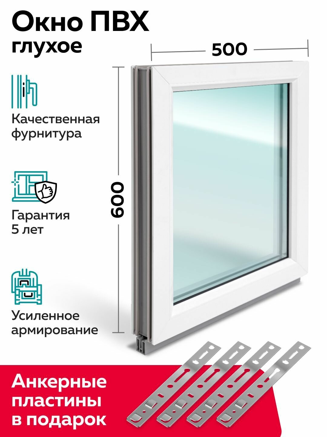 10 цен на Пластиковое окно ПВХ 600х500 мм глухое, энергосберегающий стеклопакет однокамерный, одностворчатое, белое