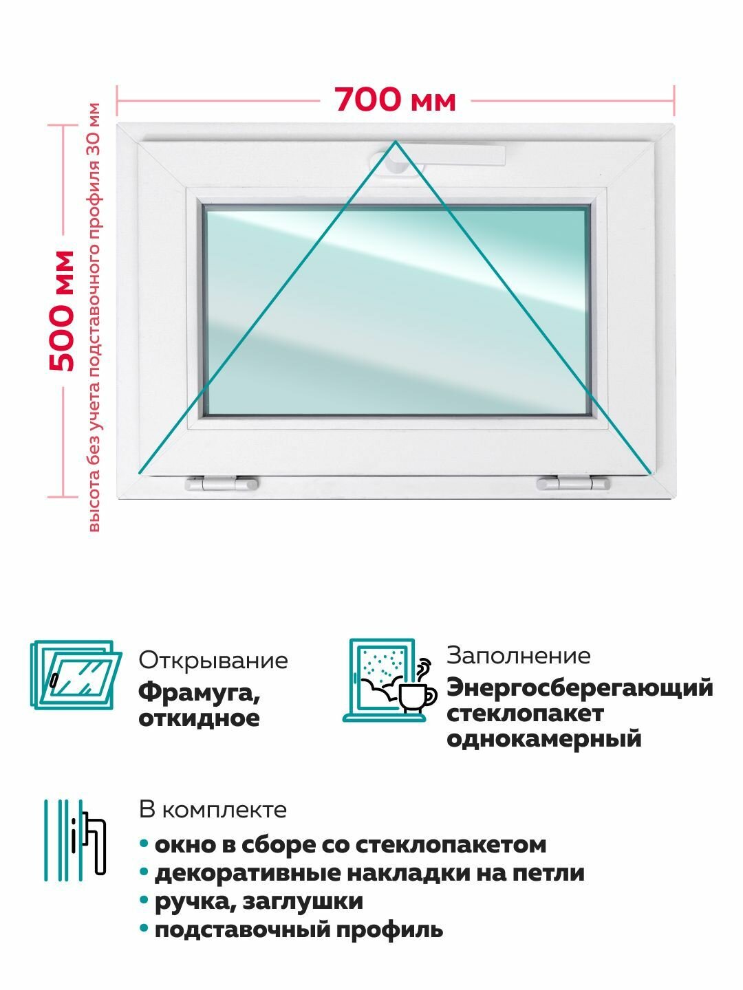 10 цен на Пластиковое окно ПВХ 500х700 мм фрамуга, откидное, энергосберегающий стеклопакет двухкамерный, одностворчатое, белое