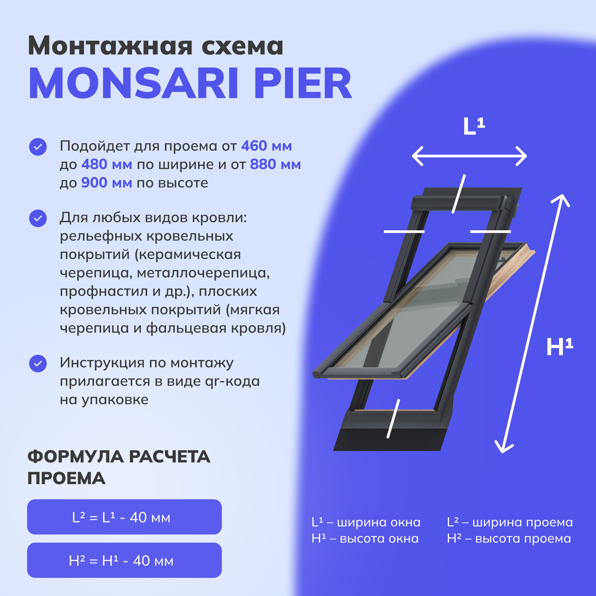 Мансардное окно Monsari Pier из профиля Rehau 540x1240 мм (ШхВ), одностворчатое, с окладом для монтажа 73 900 ₽