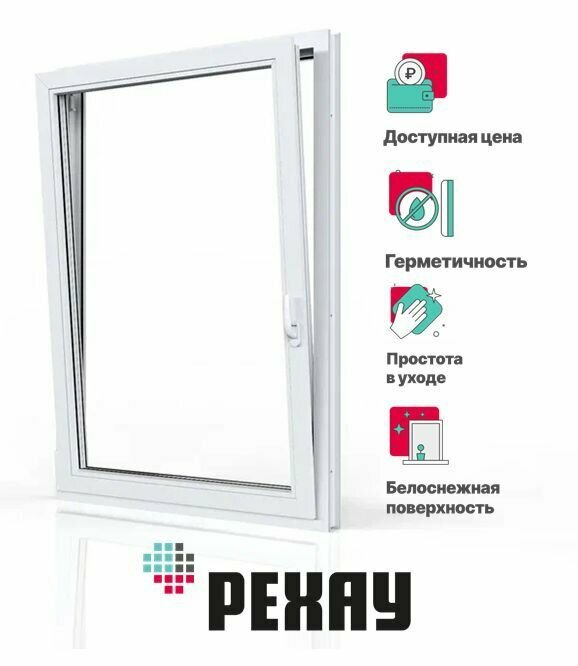 Пластиковое окно ПВХ РЕХАУ BLITZ 800х800 мм (ВхШ), одностворчатое, поворотно-откидное левое, двухкамерный стеклопакет, белое 12 518 ₽