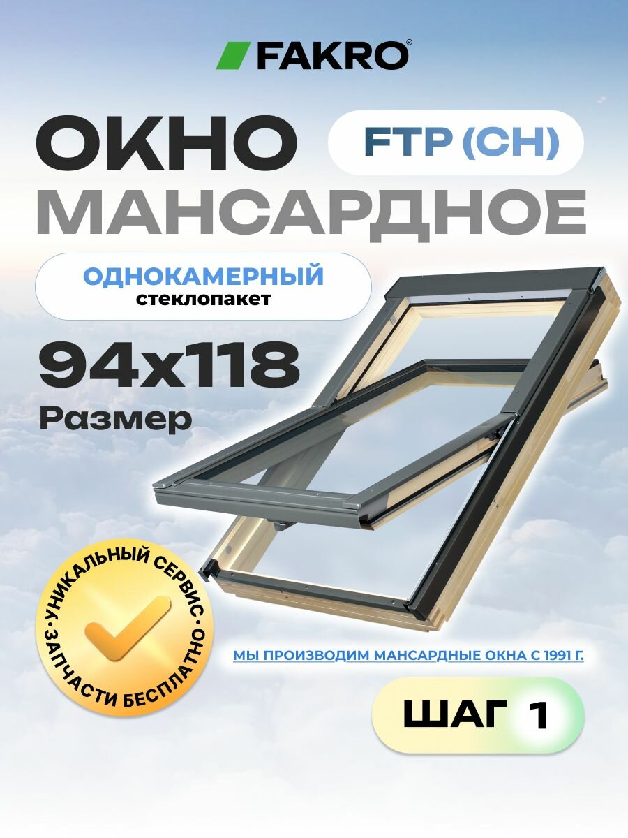 Мансардное окно 94*118 FTP (CH) FAKRO с однокамерным стеклопакетом ( без вентиляционного клапана) информация: