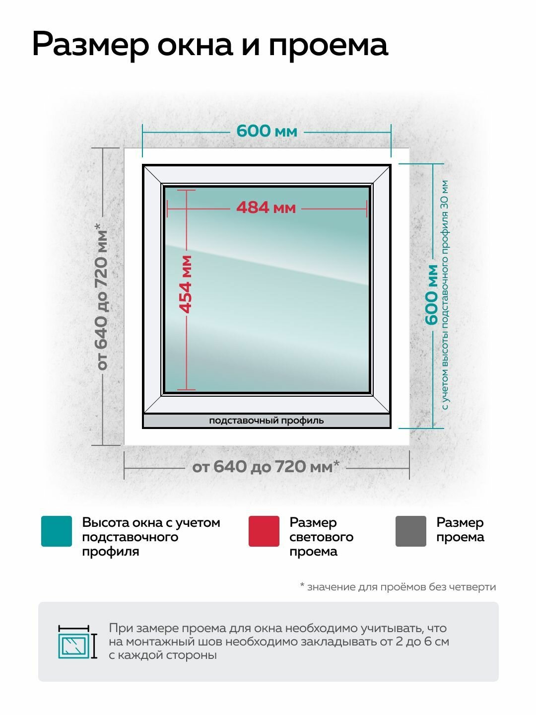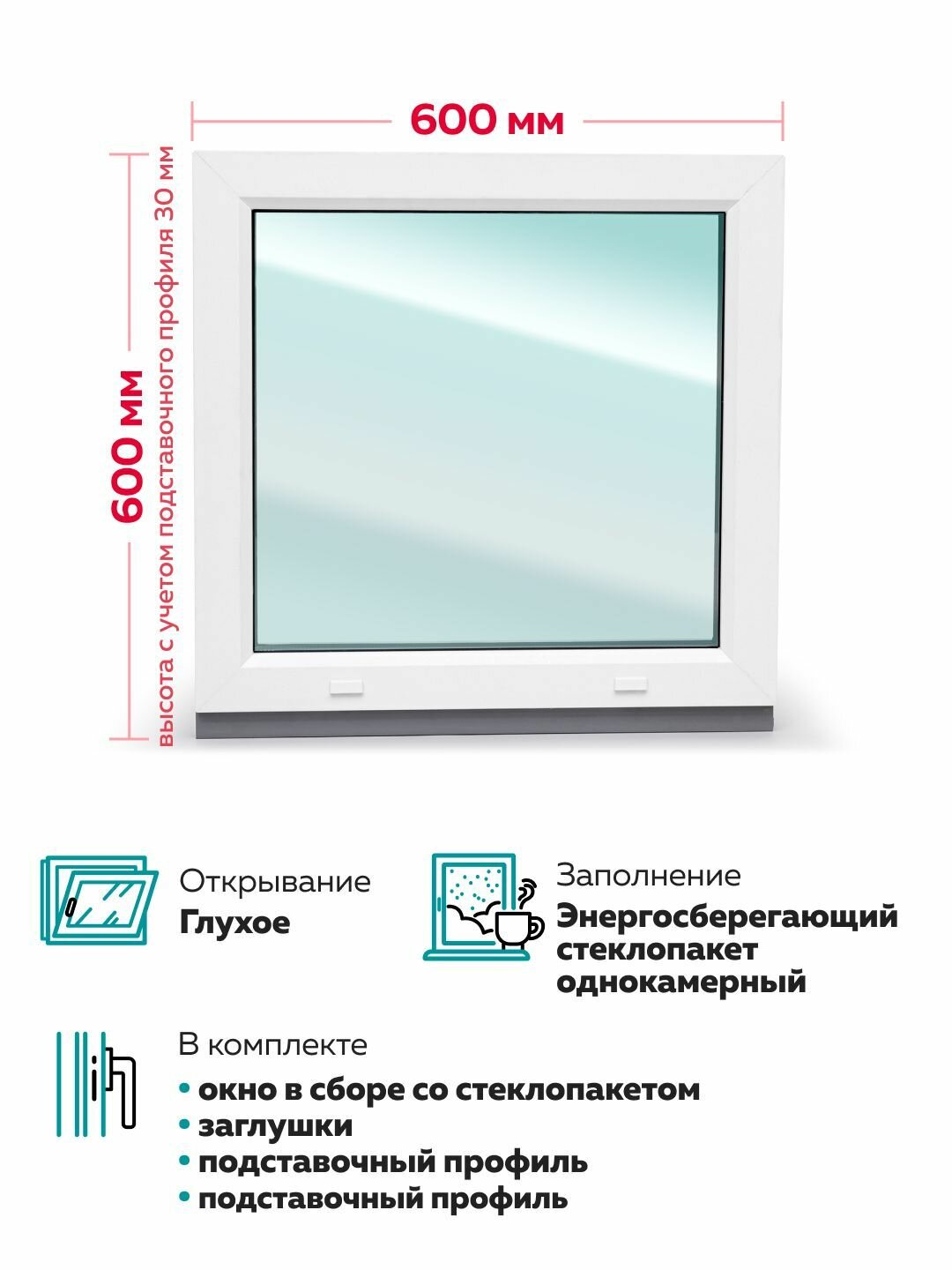 Пластиковое окно ПВХ 600х600 мм глухое, энергосберегающий стеклопакет однокамерный, одностворчатое, белое информация: