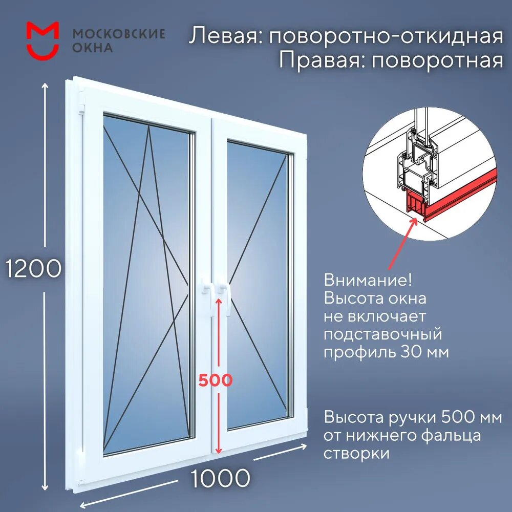 Пластиковое окно 1200х1000 мм ПВХ РЕХАУ BLITZ, две створки, двухкамерный стеклопакет, трехкамерный профиль информация: