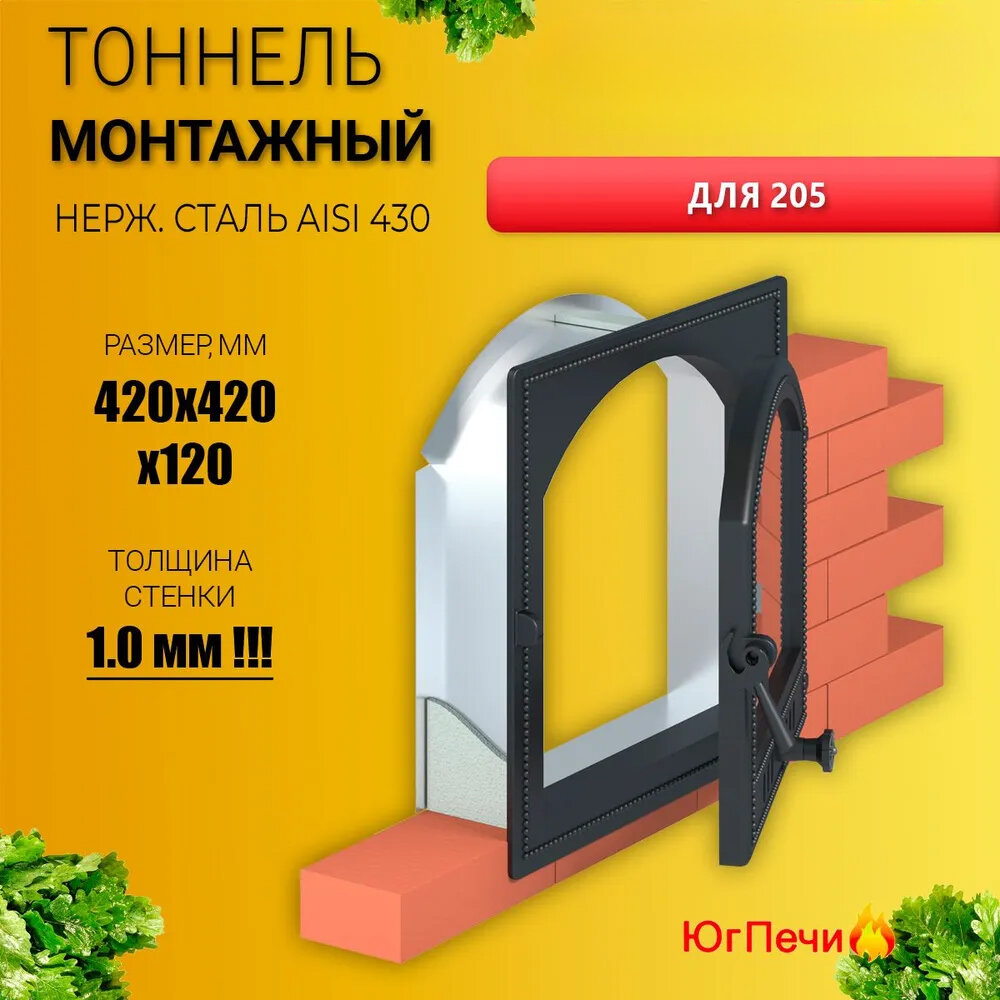 Тоннель монтажный из нерж стали AISI 430 (420x420x120) для 205, Толщина стенки 1.0 мм! информация: