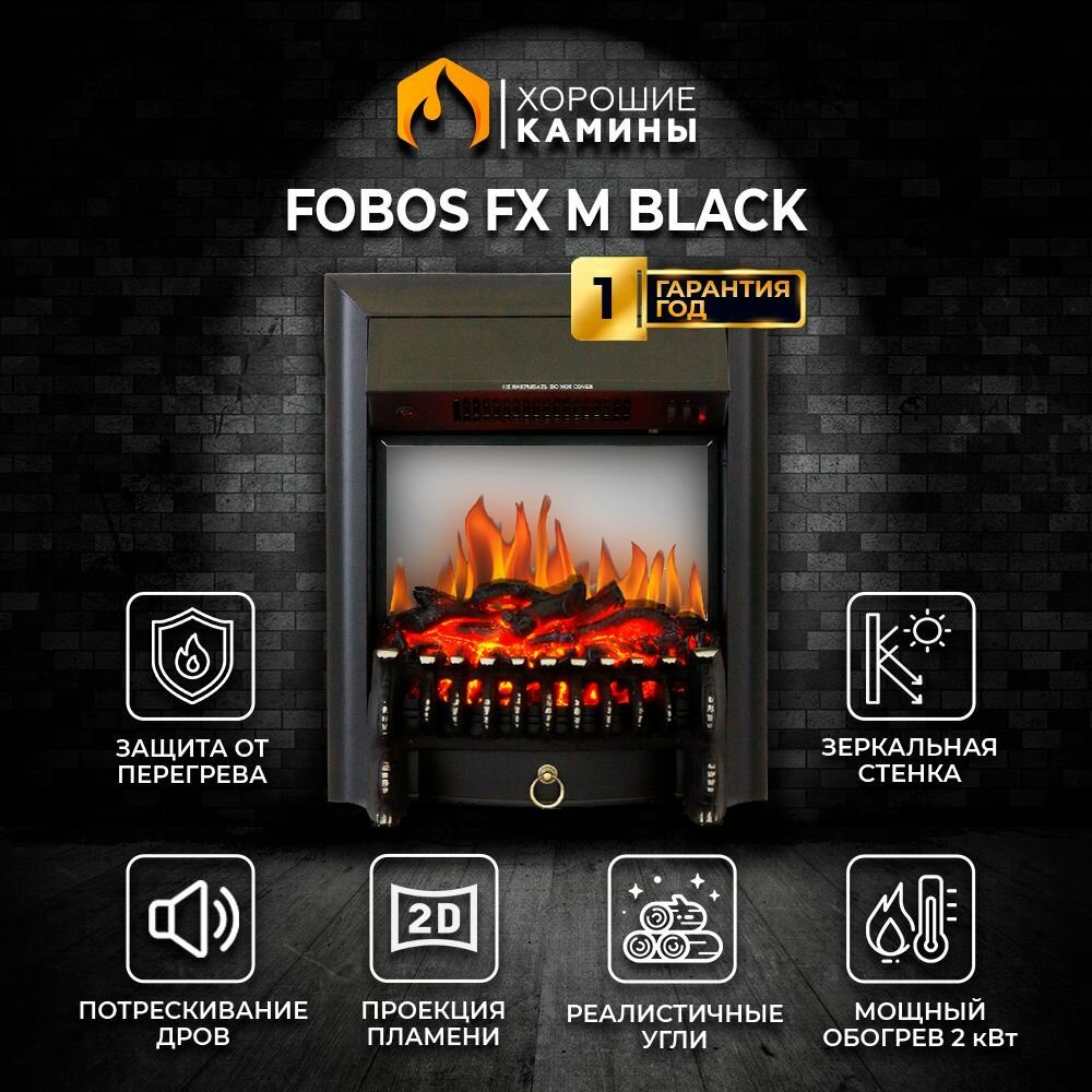 Камин электрический хорошие камины Марс мрамор с очагом Fobos FX M Black, с обогревом и звуком потрескивания дров информация: