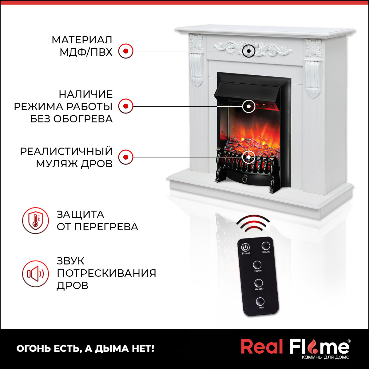 Электрокамин RealFlame Dominica WT МДФ с очагом Fobos, звуковая имитация, пульт ДУ, обогрев информация: