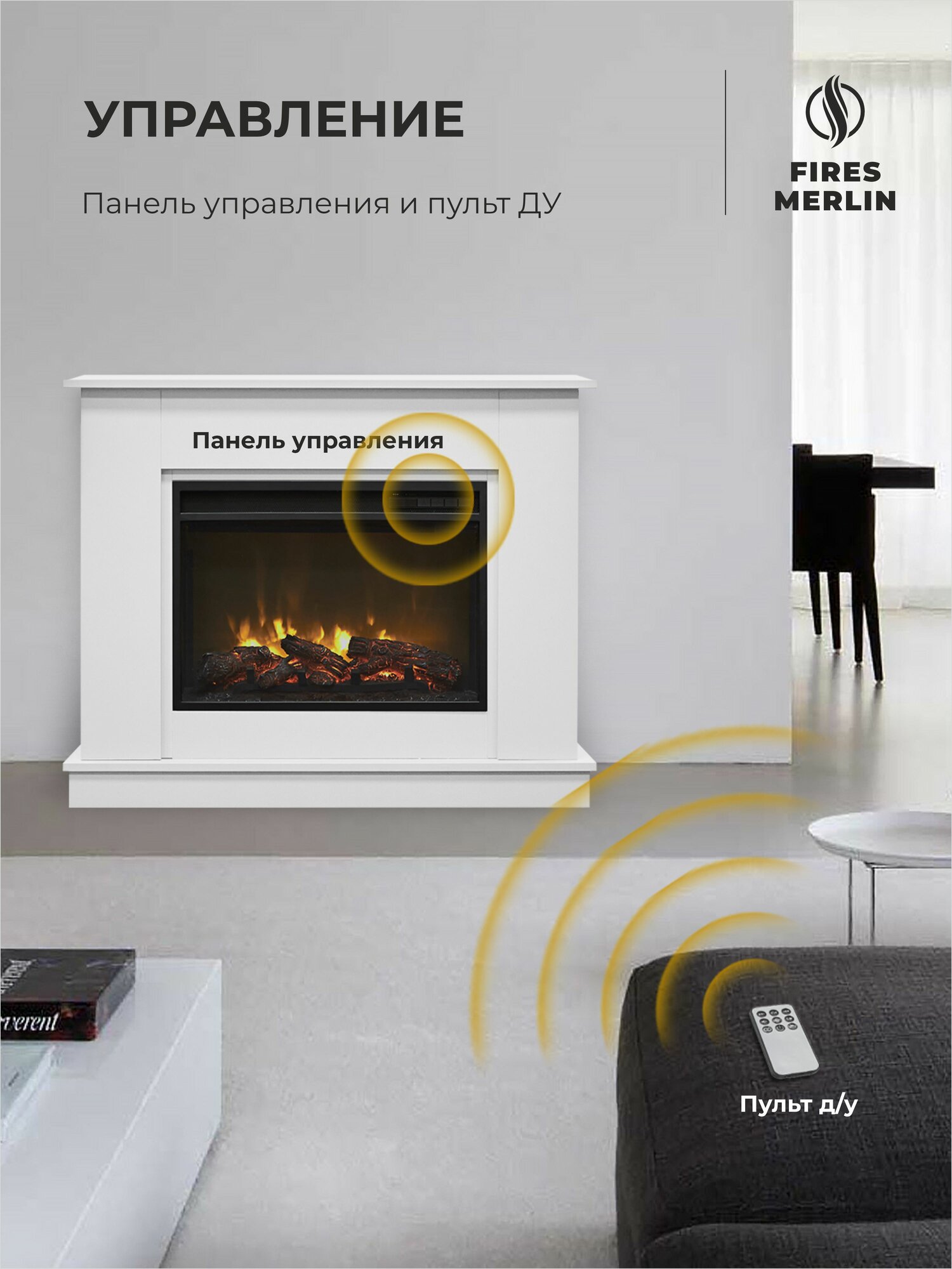 Электрокамин Fires Merlin Lord WT белый c очагом, звуковая имитация и пульт ДУ, современный стиль информация: