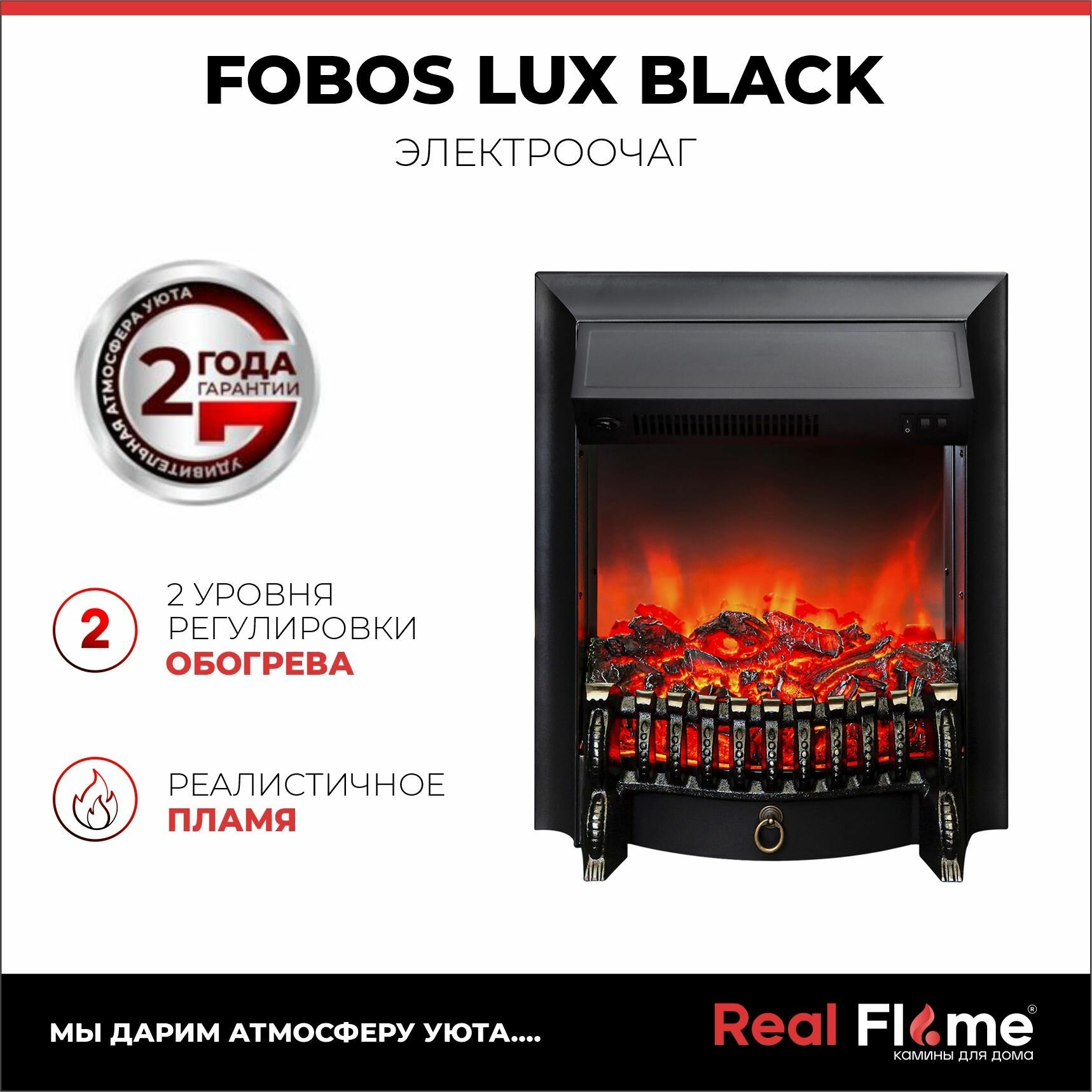Электроочаг RealFlame Fobos Lux, встраиваемый камин с обогревом, без пульта ДУ информация: