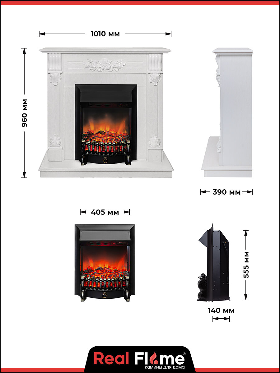 Электрокамин RealFlame Ottawa WT МДФ с очагом Fobos, звуковая имитация, пульт ДУ, обогрев информация: