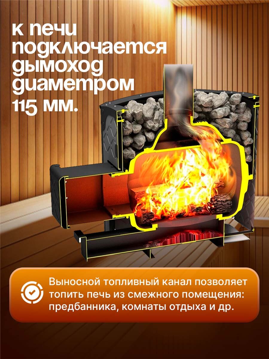 Газовая печь для бани Ермак "Уралочка-16", дымоход, мощность 16кВт, 16м³