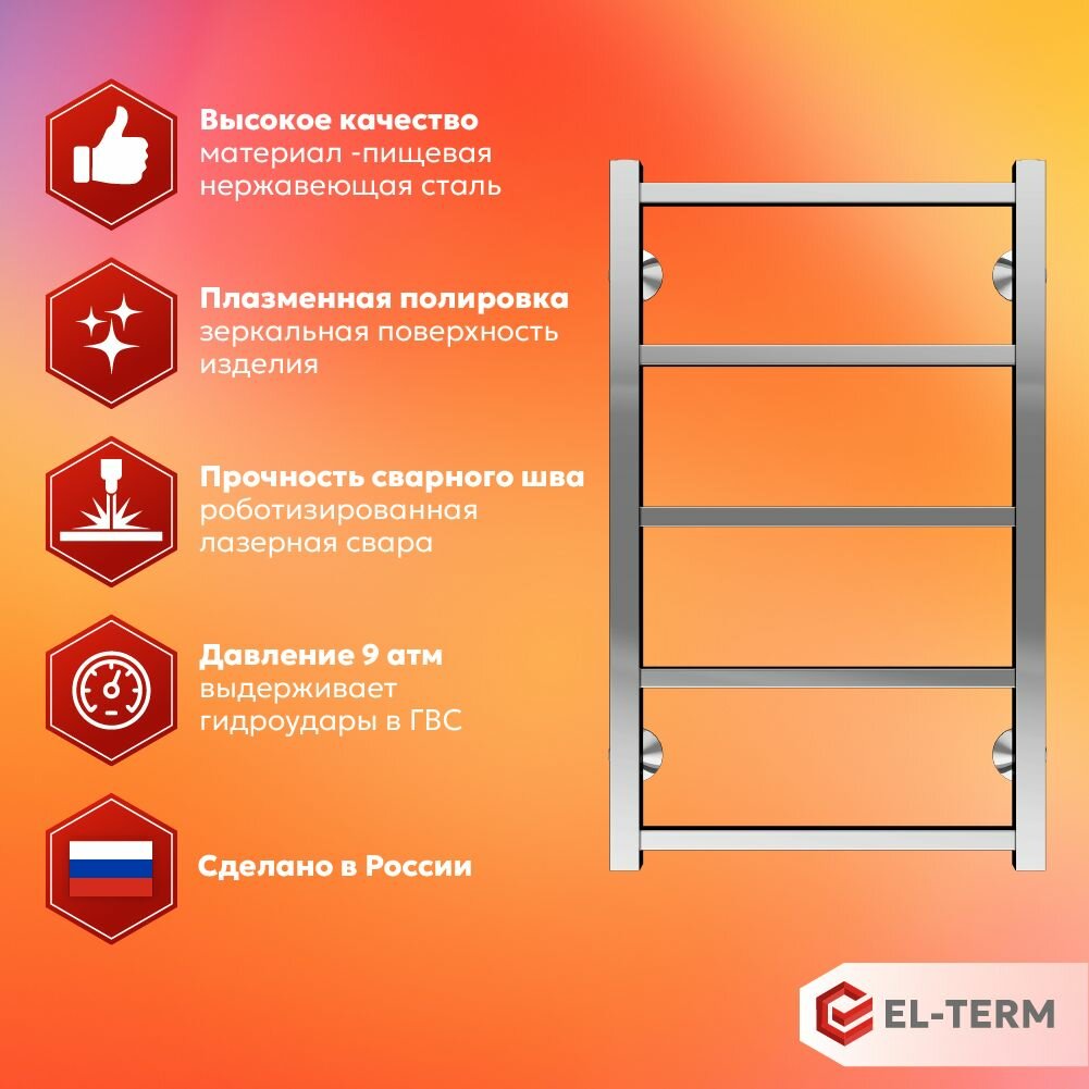 Полотенцесушитель водяной EL-TERM (Эл-Терм) рейн 400х900 мм, нижнее подключение, нержавеющая сталь, гарантия 10 ЛЕТ/ водяной полотенцесушитель 15 900 ₽