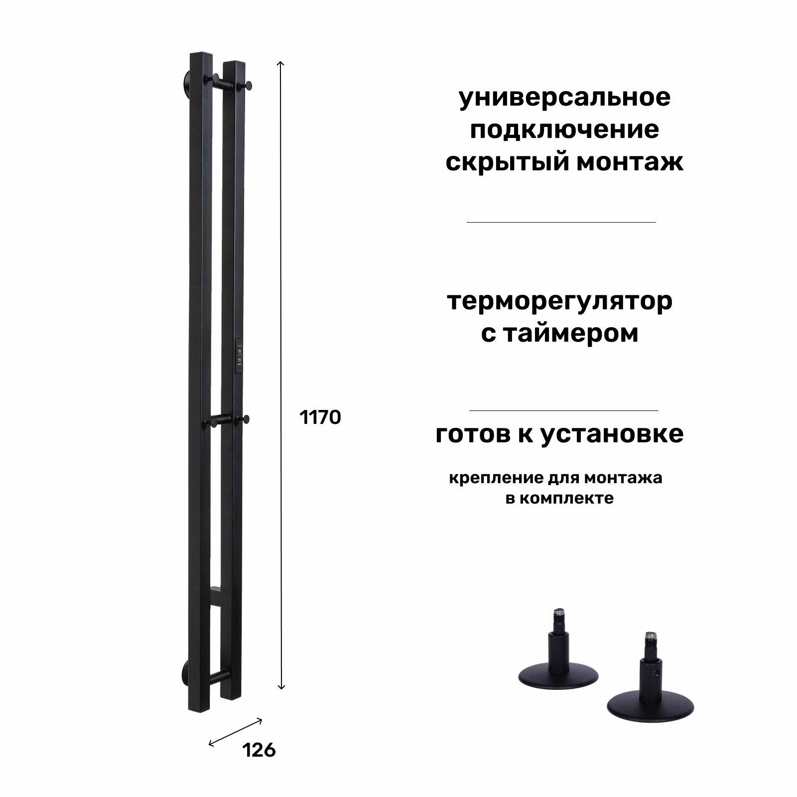 Полотенцесушитель электрический с терморегулятором Лесенка Прима 130*1200 черный матовый универсальное подключение информация: