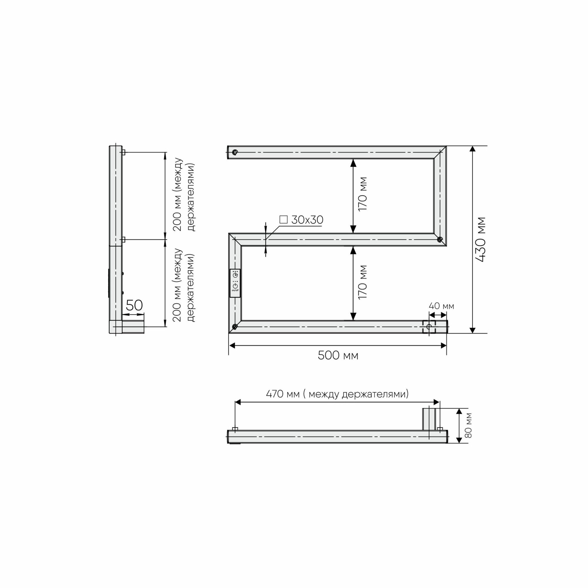 Полотенцесушитель электрический Маргроид В10 30х80, таймер, черный матовый