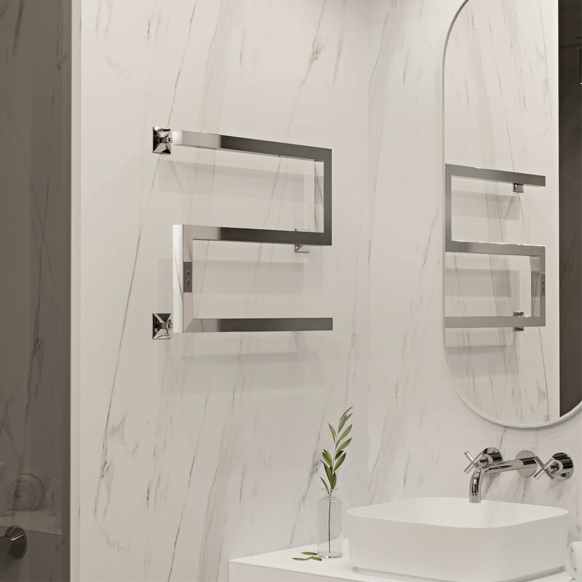 Полотенцесушитель дизайнерский электрический, профильный BAU Stella 8х80, 2 коллектора, 3 крючка (Белый DB-0071)
