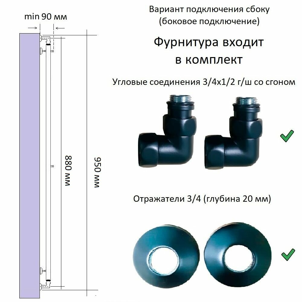 Отзывы на Полотенцесушитель Водяной Вертикаль с 2 вешалками 70 мм 800 мм /цвет черный матовый /полный комплект /гарантия 5 лет