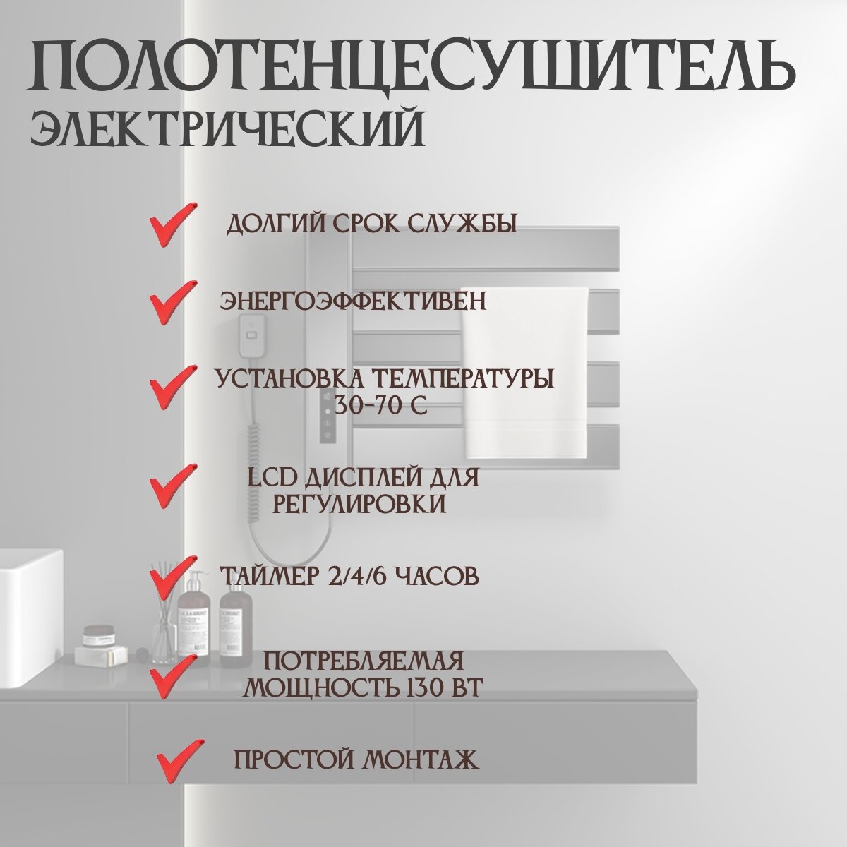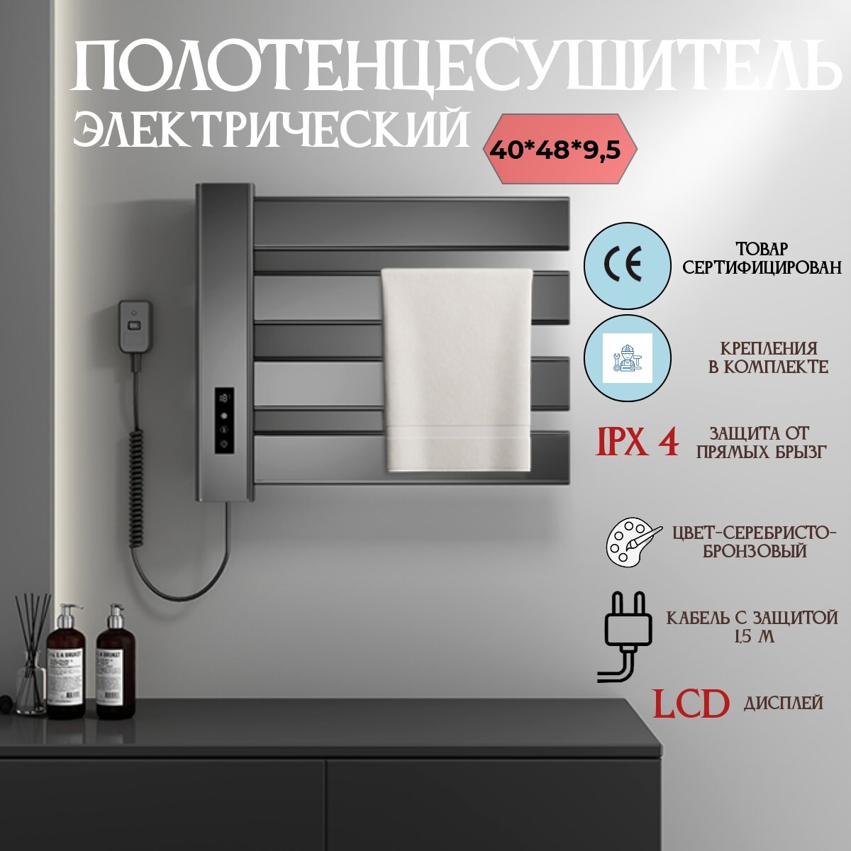 Полотенцесушитель электрический Talmet XN503, 40*48*10см, серебристо-бронзовый, 130Вт, IPX4 информация: