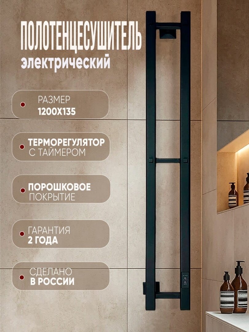Отзывы на Полотенцесушитель УЗКИЙ ЧЕРНЫЙ Eriknar электрический 1200 мм / 135 мм