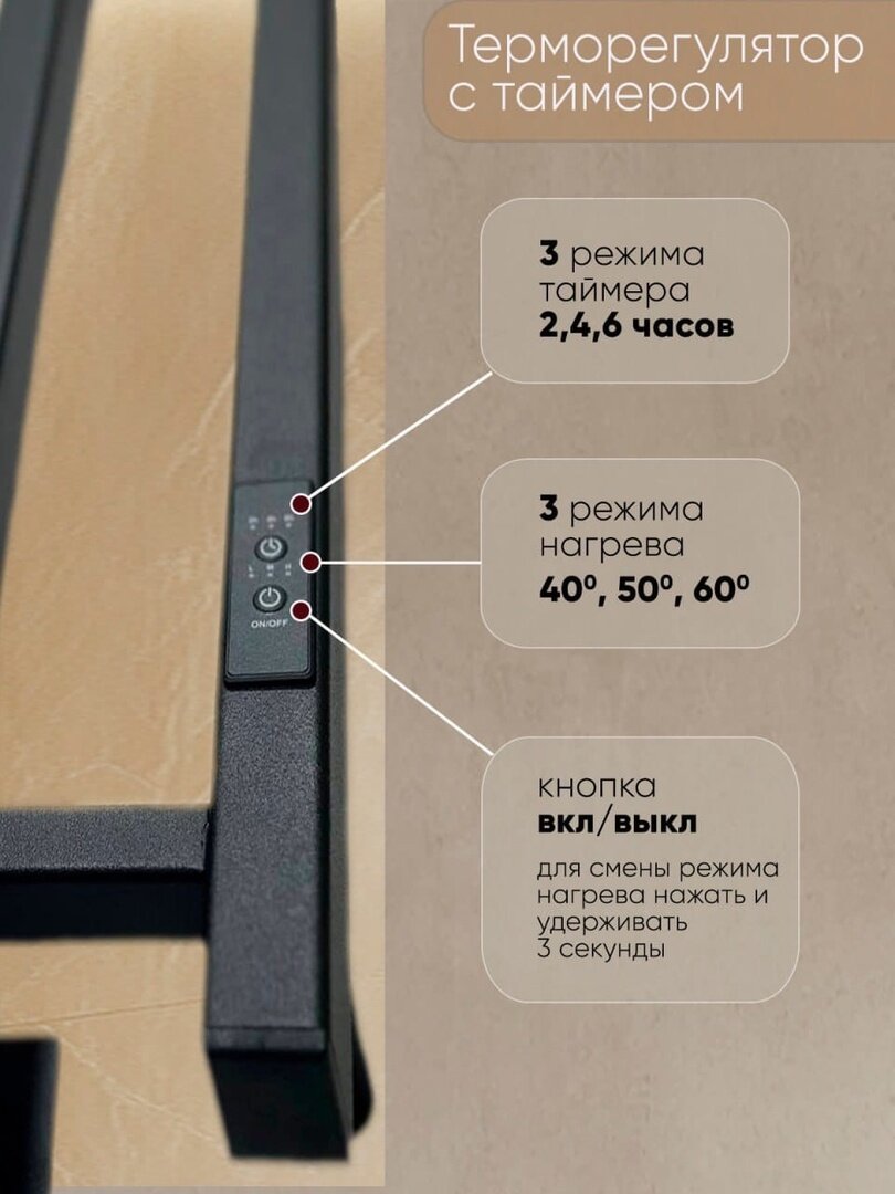 Полотенцесушитель электрический Маргроид В10 30х80, таймер, черный матовый