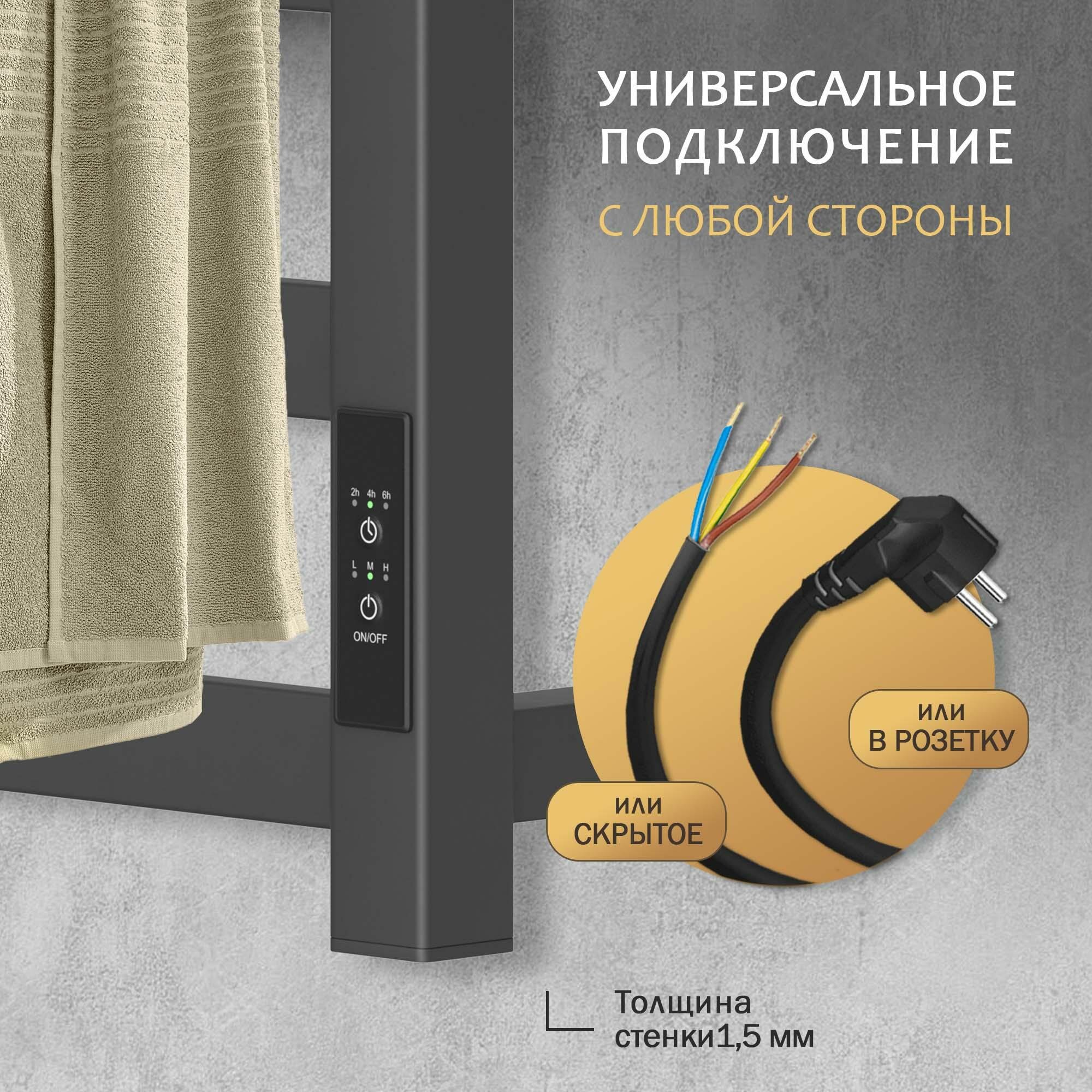 Полотенцесушитель электрический Маргроид В10 30х80, таймер, черный матовый