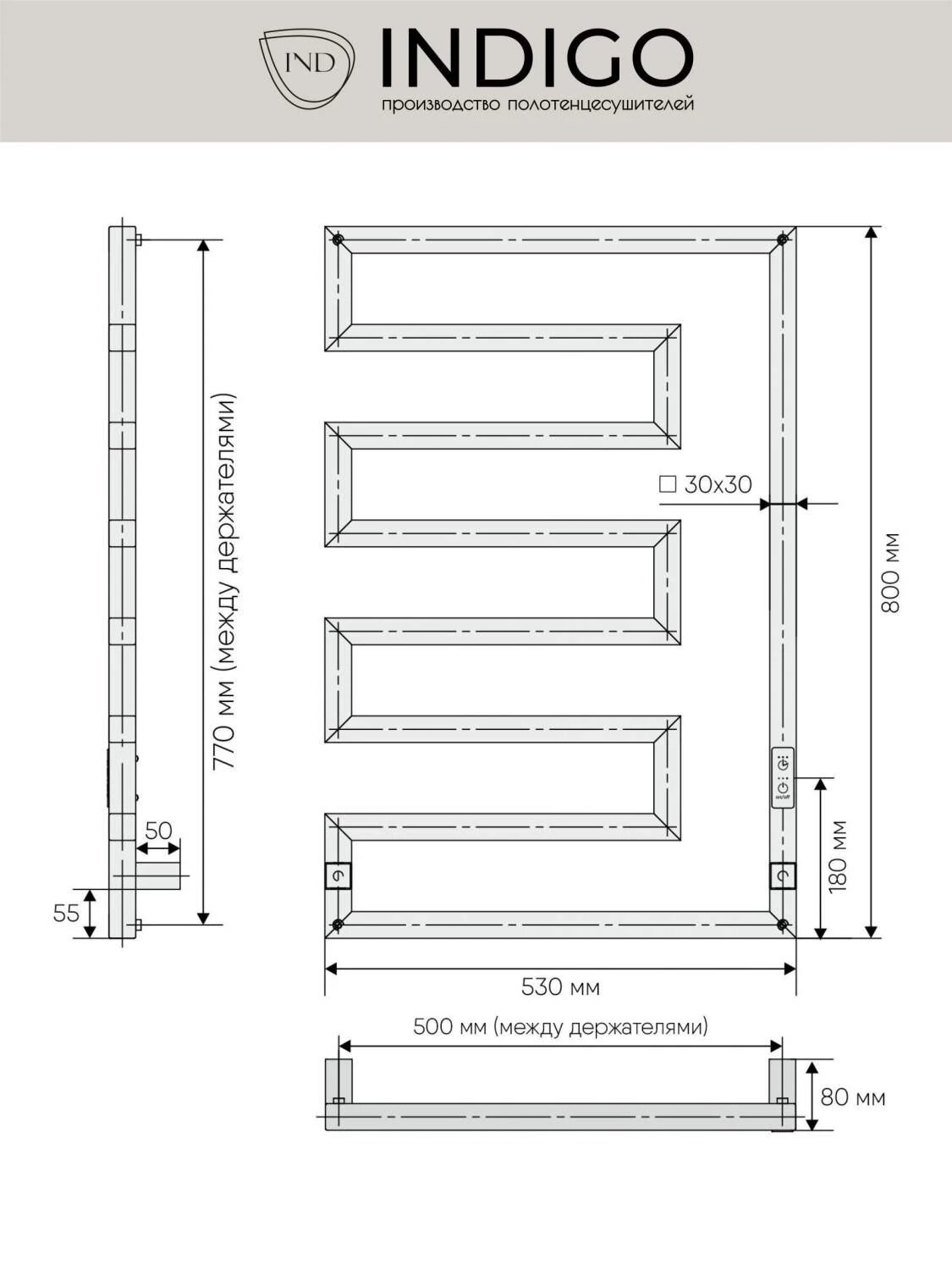 Полотенцесушитель электрический ind (Indigo) rodos 80 50 белый матовый dgr80-50wmrt Indigo информация: