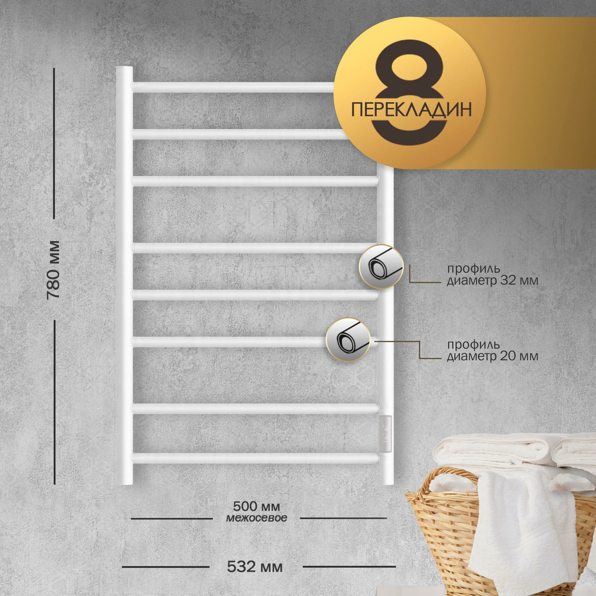 Полотенцесушитель дизайнерский электрический, профильный BAU Stella 8х80, 2 коллектора, 3 крючка (Белый DB-0071)