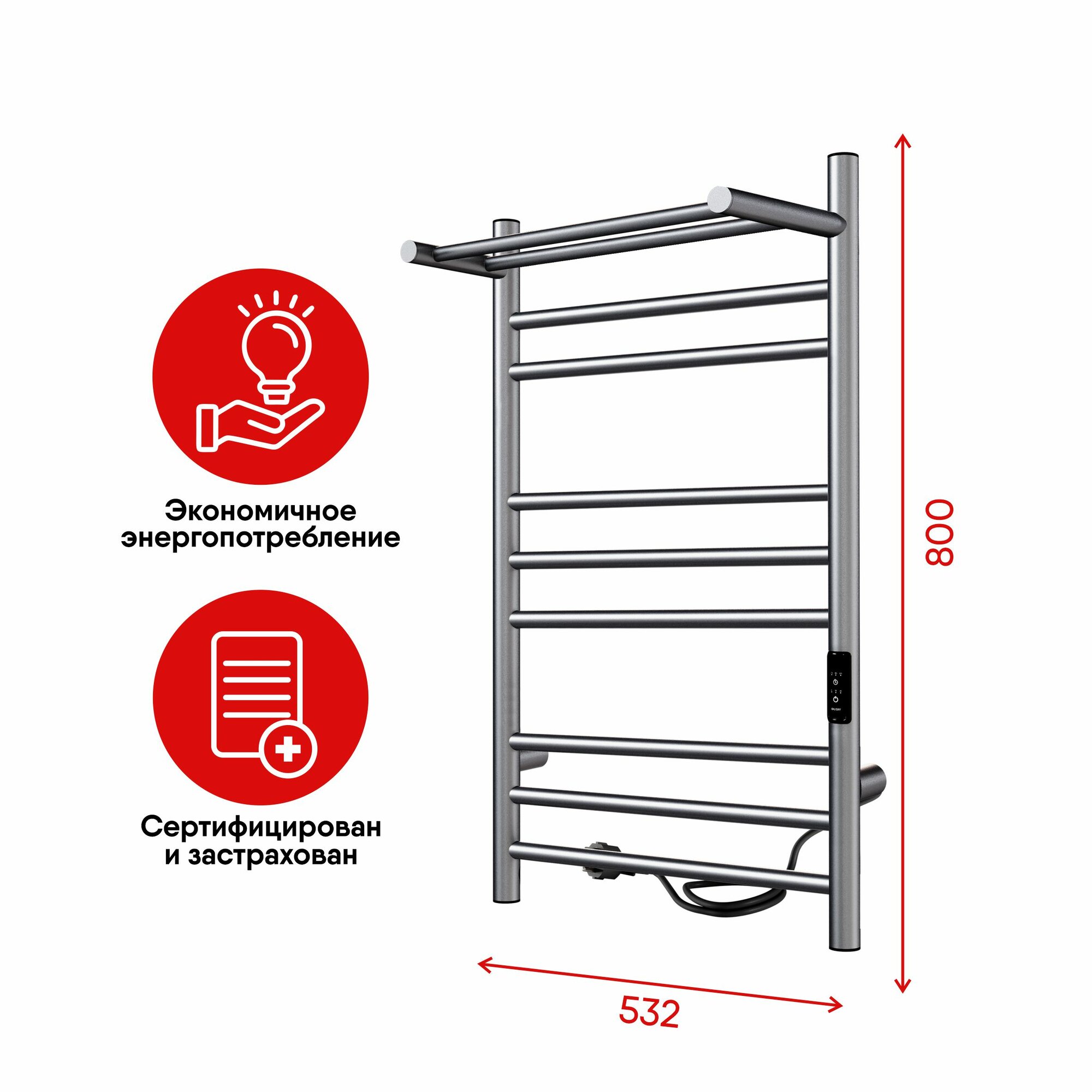 Отзывы на Полотенцесушитель электрический с терморегулятором INDIGO 80/50, с полкой