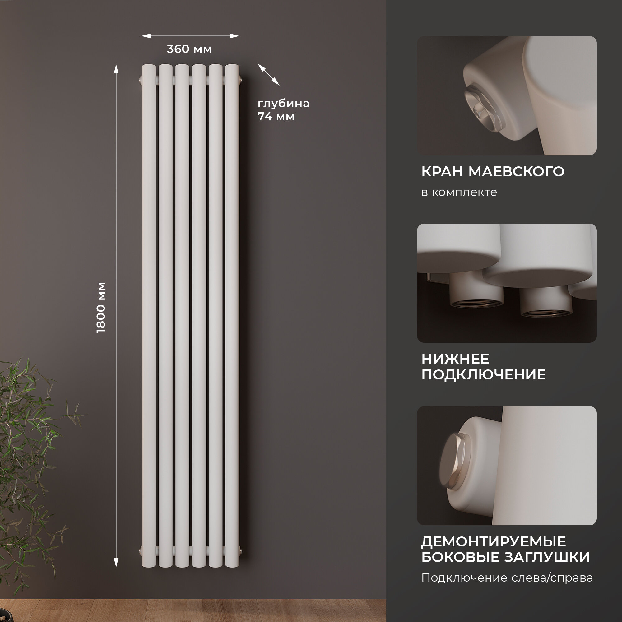 10 цен на Радиатор отопления Faberg Steelion, трубчатый, 1800х360мм, 6 секций, белый, настенный, 1410 Вт