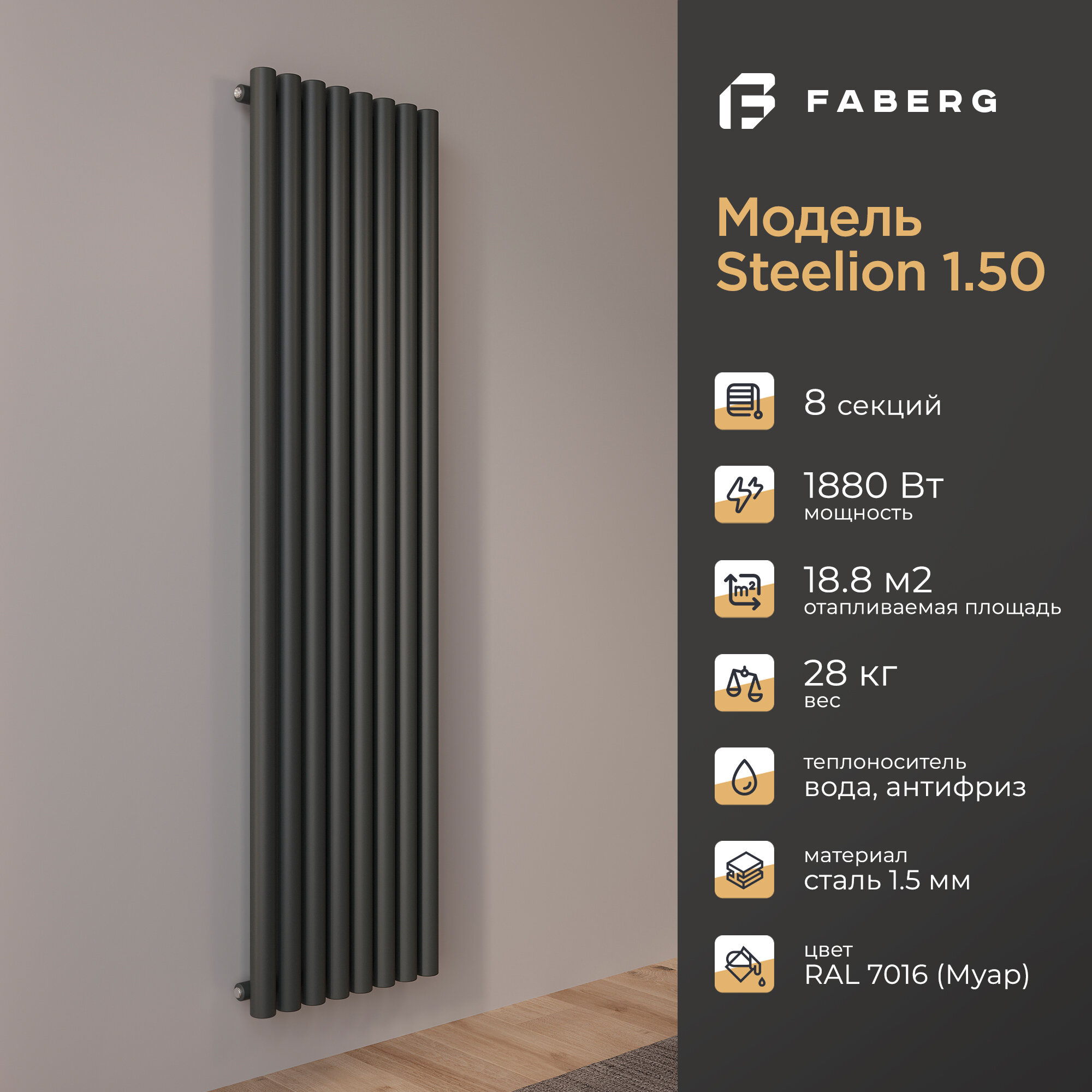 Радиатор отопления Faberg Steelion, трубчатый, 1800х480мм, 8 секций, черный, настенный, 1880 Вт 26 463 ₽